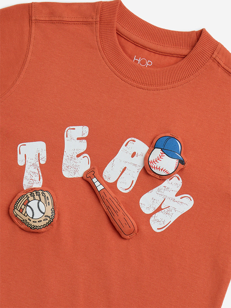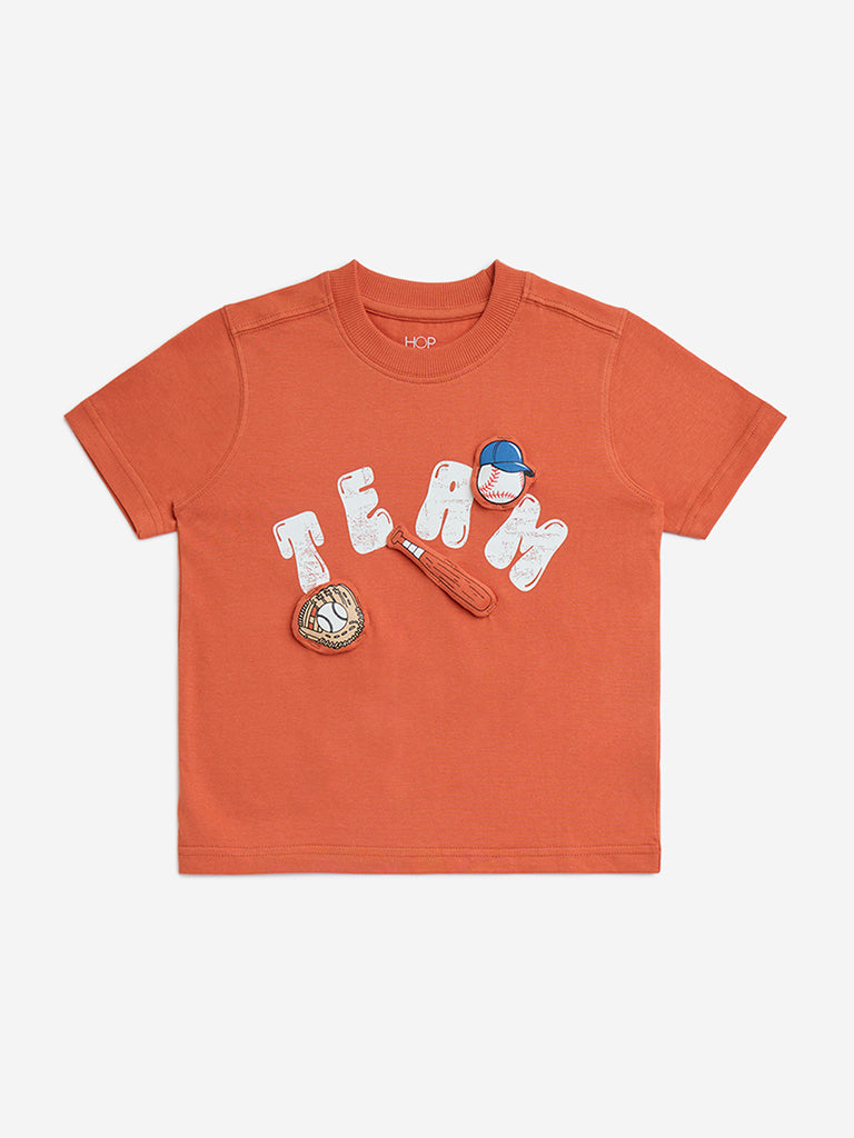HOP Kids Orange Baseball-Themed Cotton T-Shirt