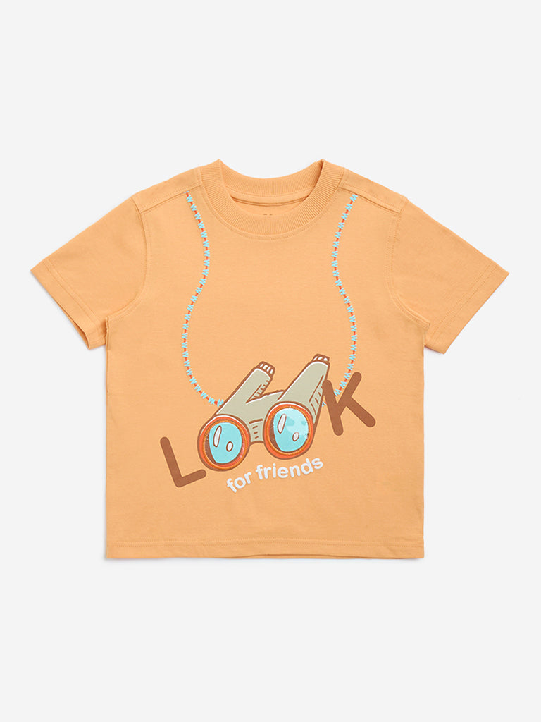 HOP Kids Orange Printed Cotton T-Shirt