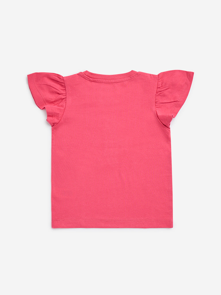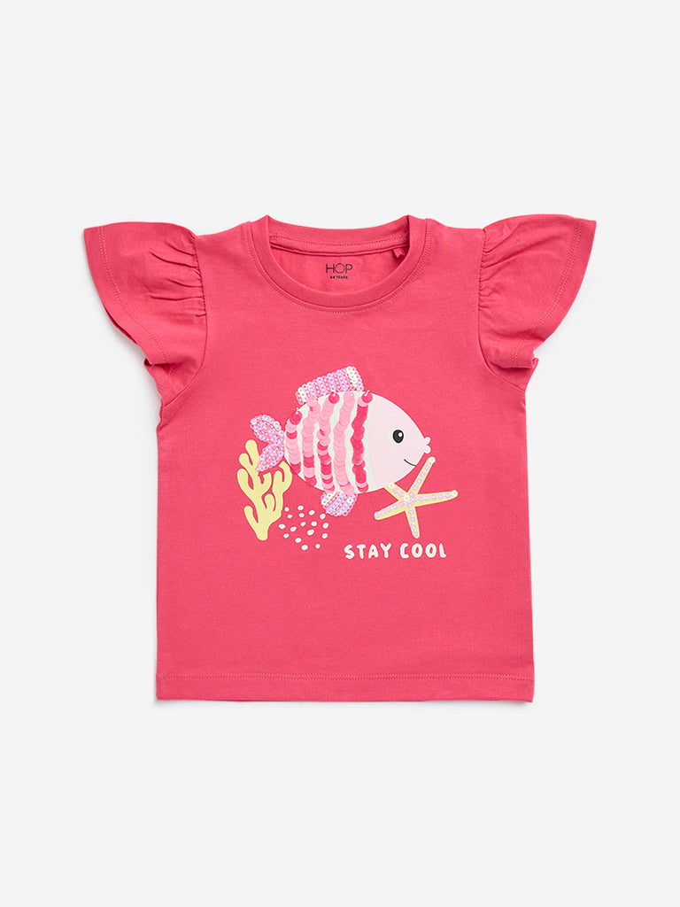 HOP Kids brings you this pink t-shirt with sea-inspired embellishments. Crafted from lightweight fabric. it displays a round neck and ruffled sleeves.