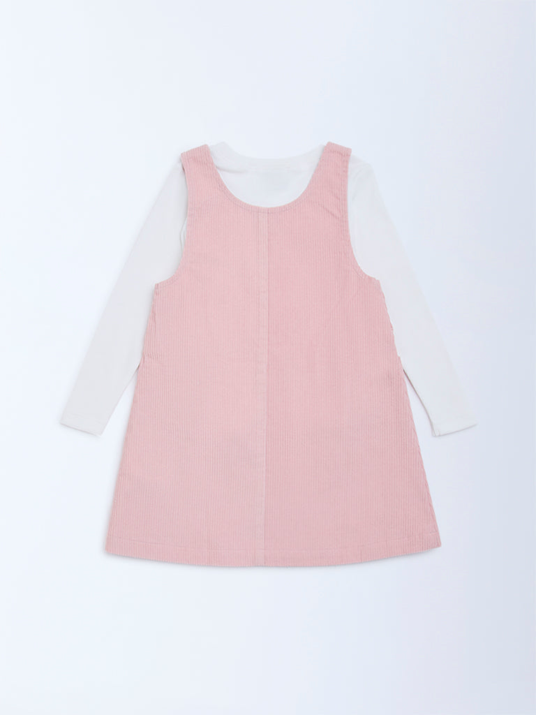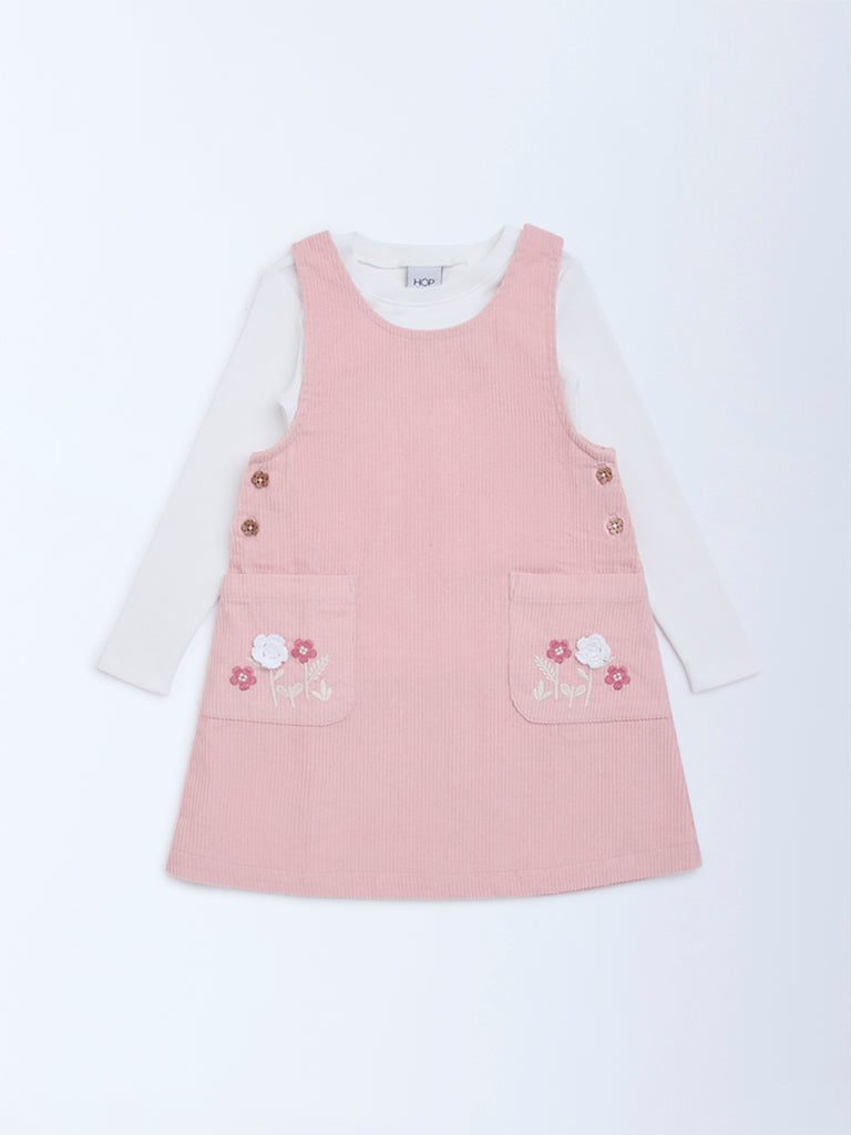 HOP Kids Pink Embroidered Cotton T-Shirt and Pinafore Set