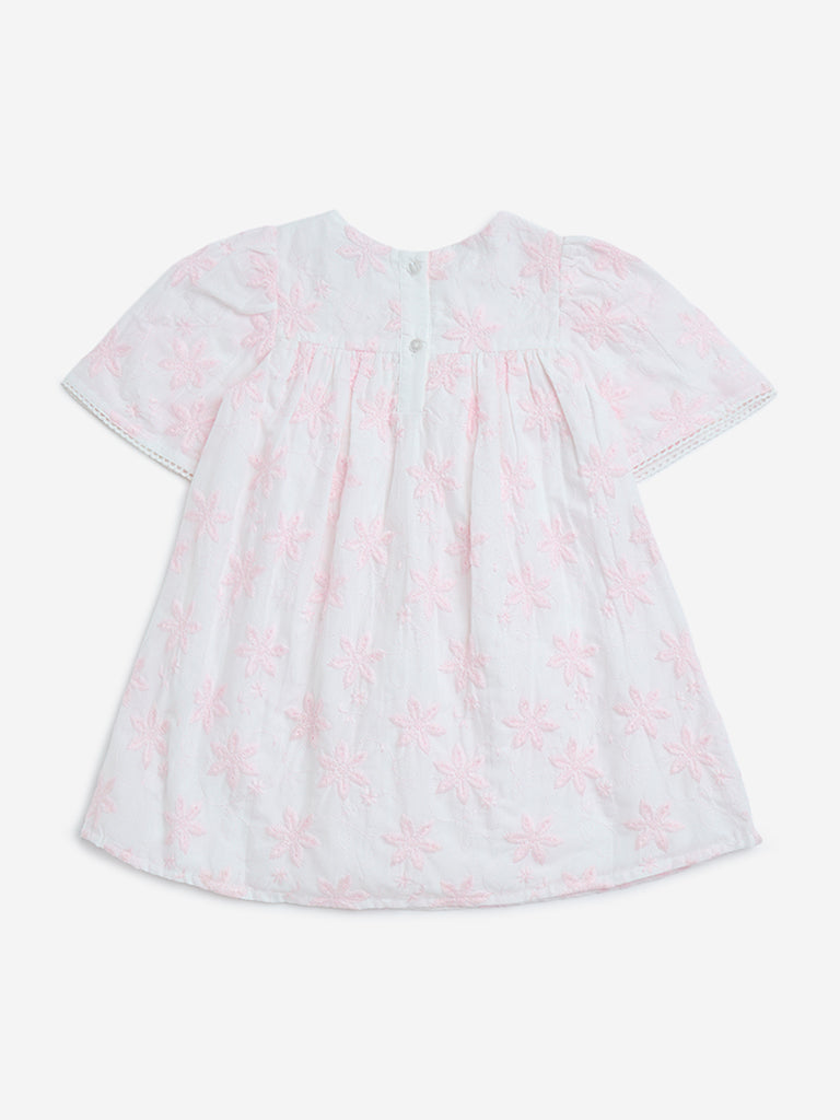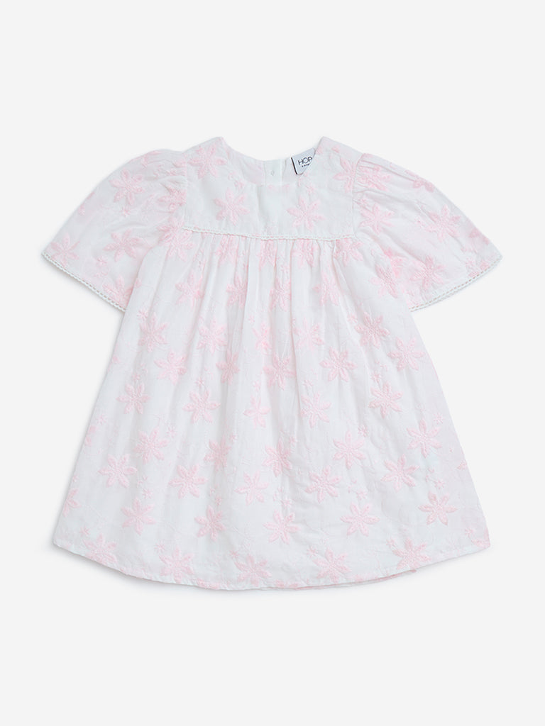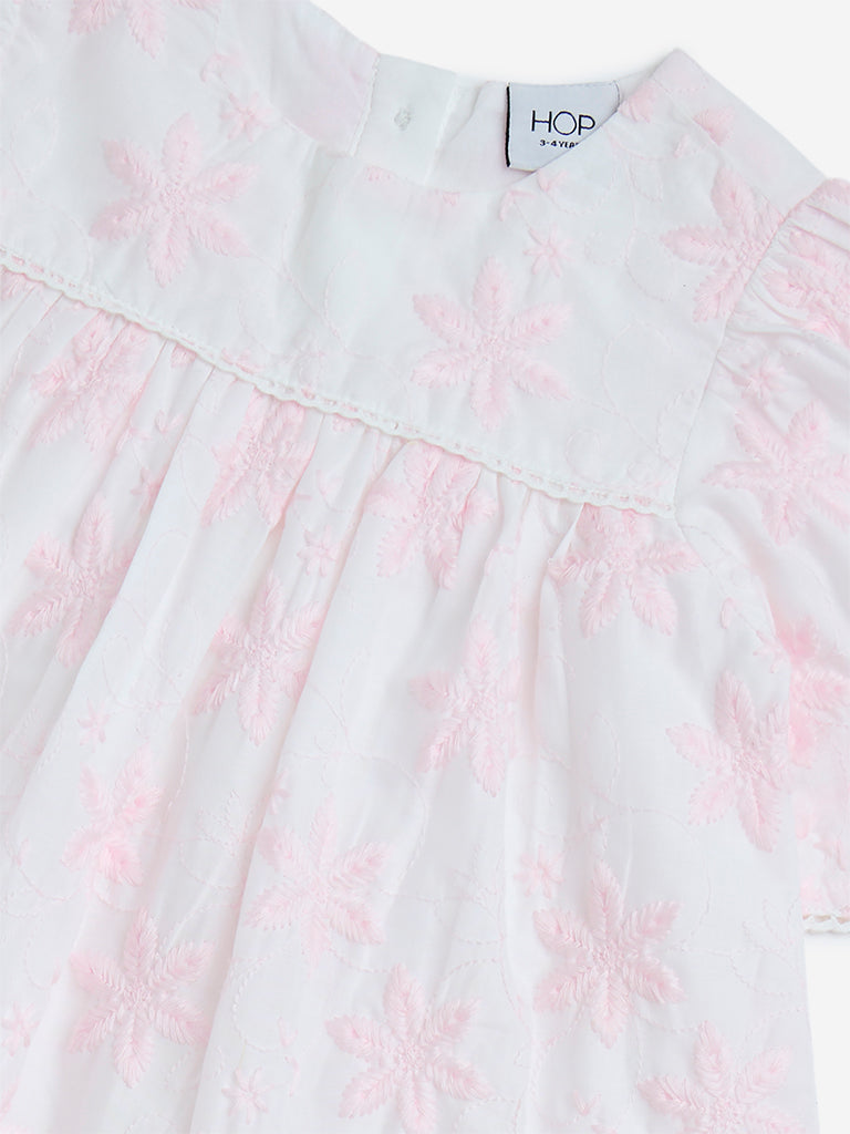 HOP Kids Pink Floral Embroidered Cotton A-Line Dress