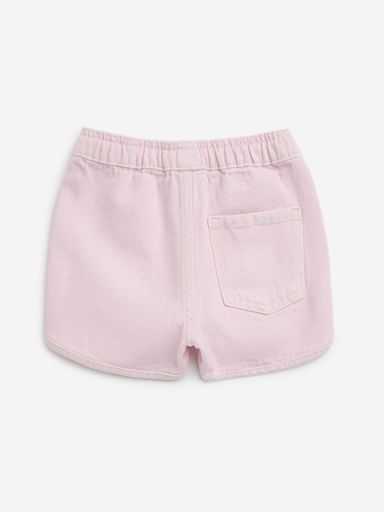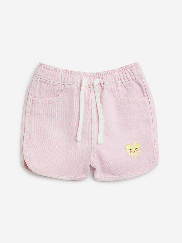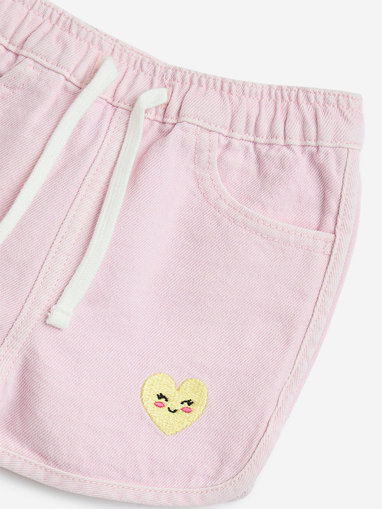 HOP Kids Pink Heart-Detailed Denim Mid-Rise Shorts