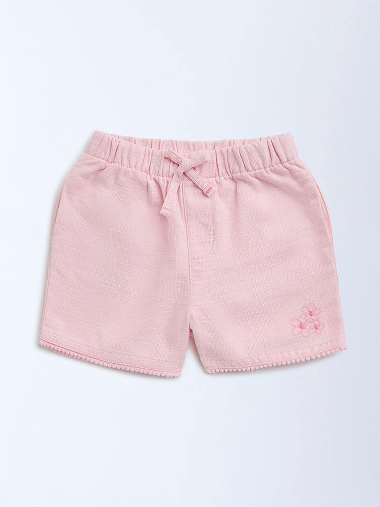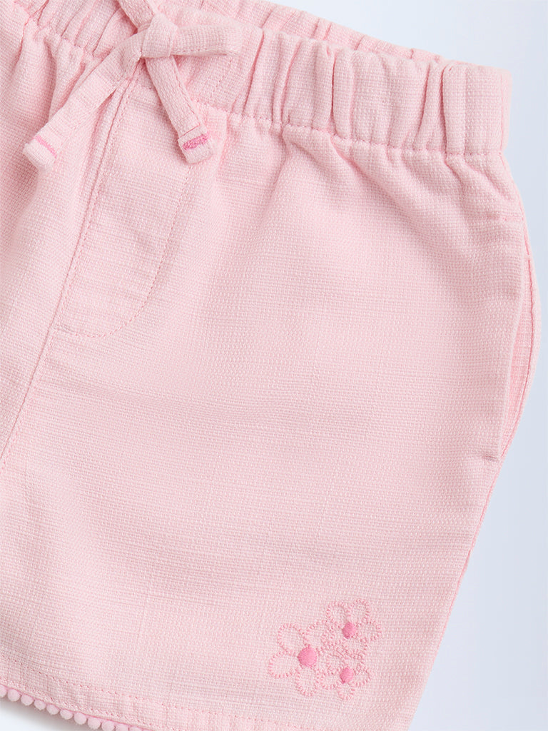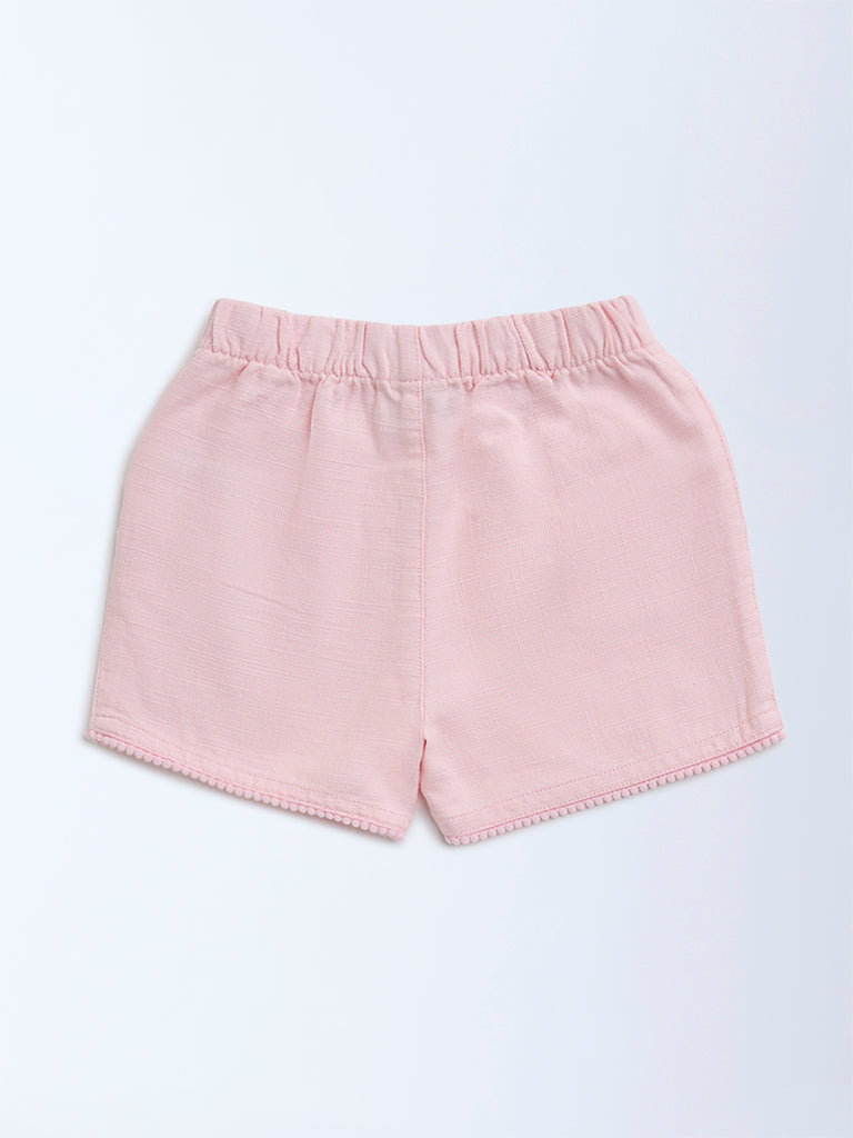 HOP Kids Pink Mid-Rise Cotton Shorts