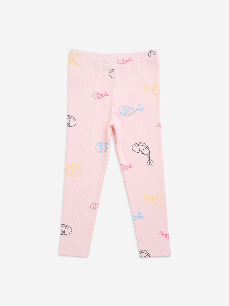 HOP Kids Pink Printed Cotton-Blend Leggings