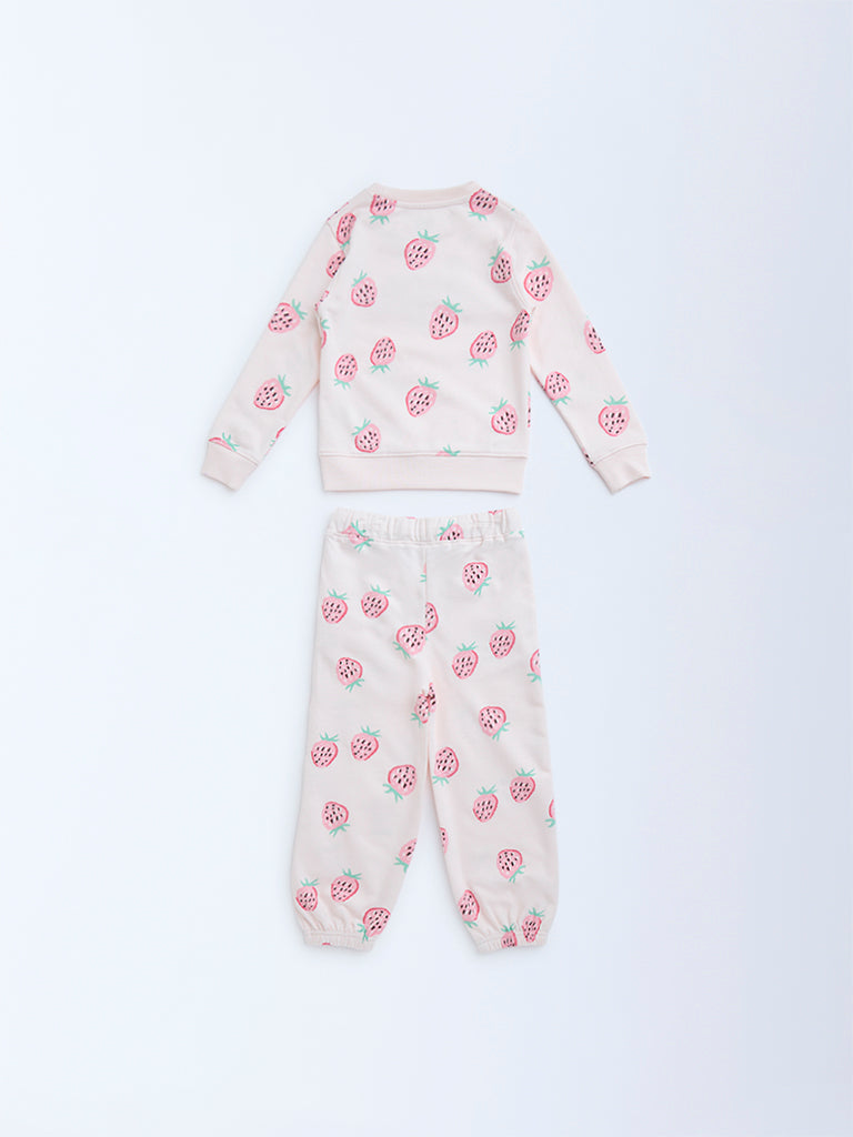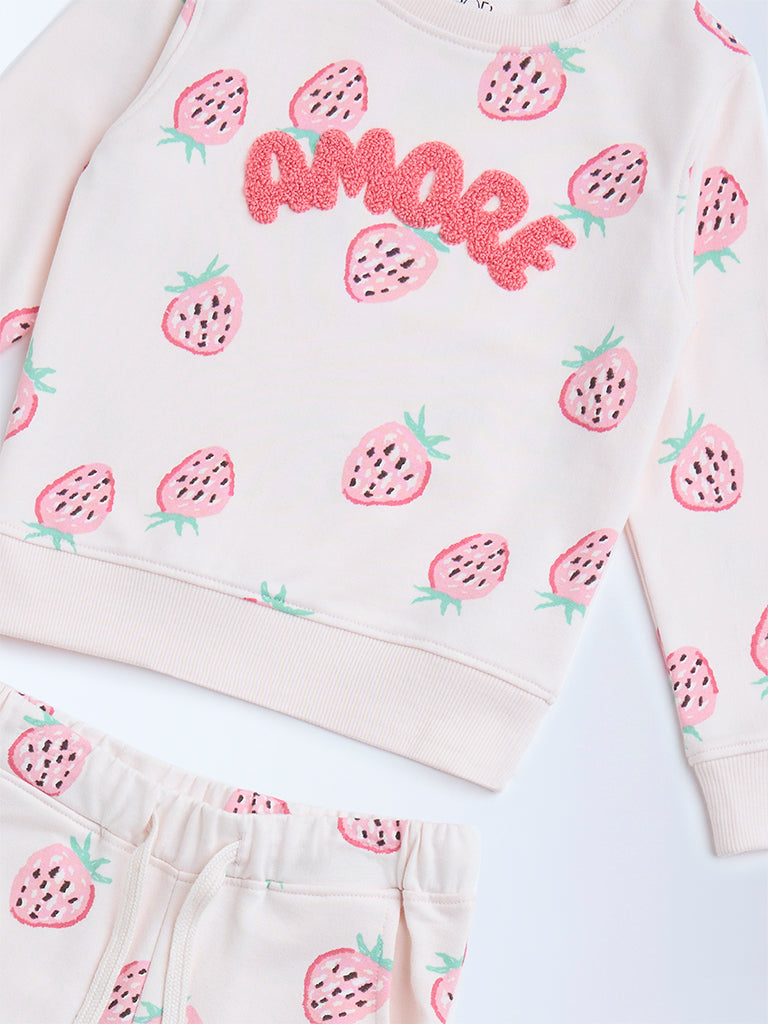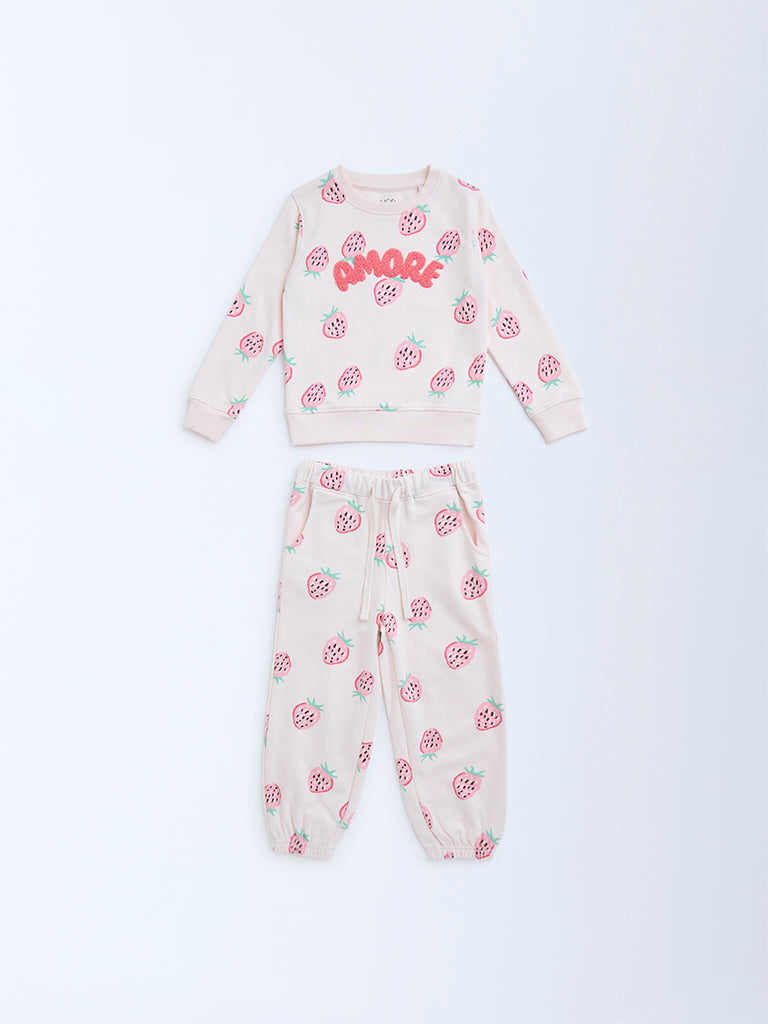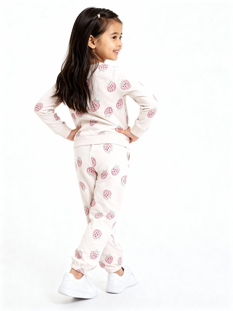 HOP Kids Pink Strawberry Design Cotton Sweatshirt with Joggers Set
