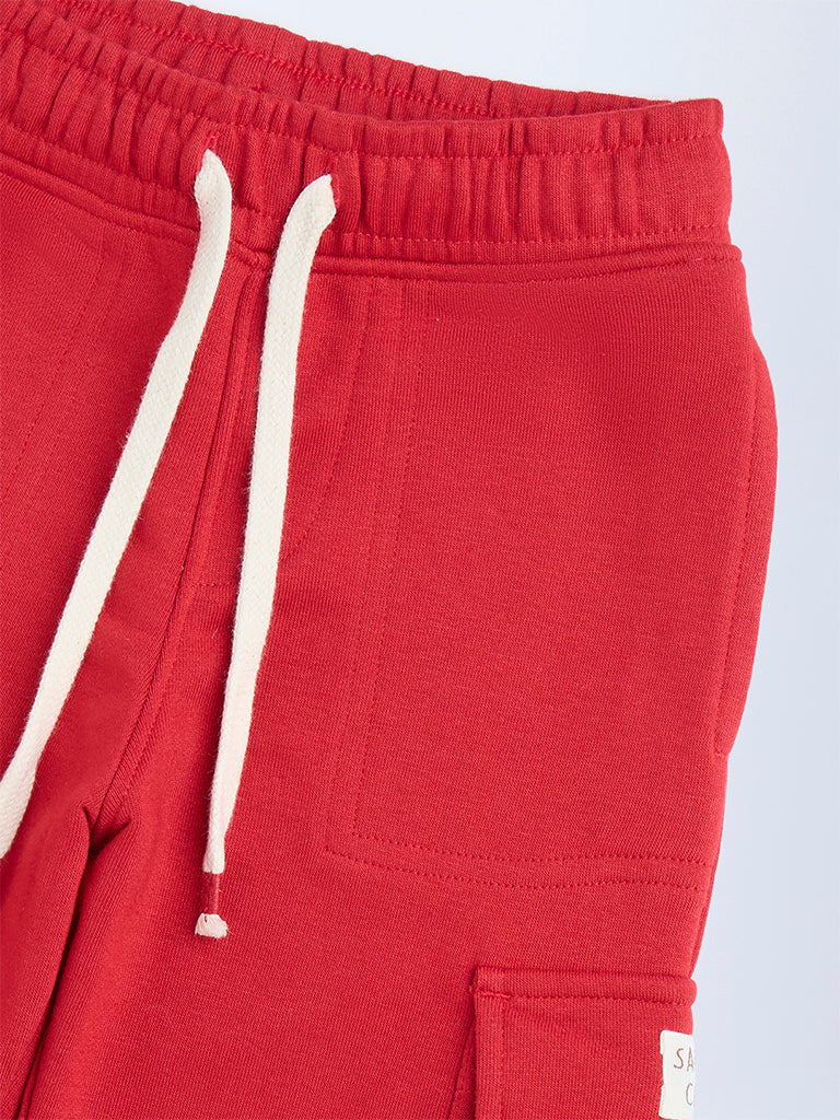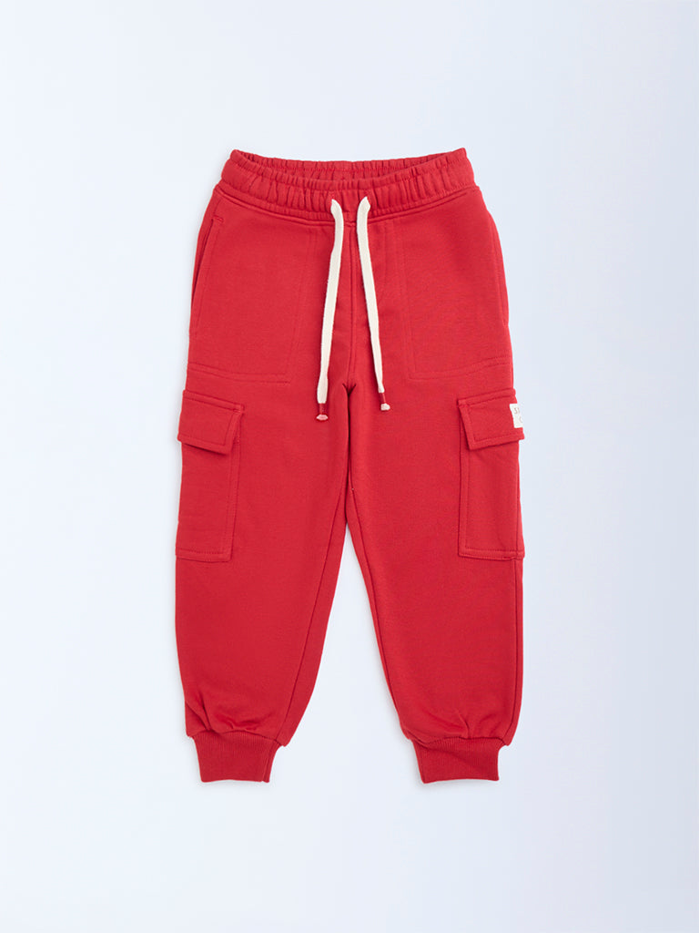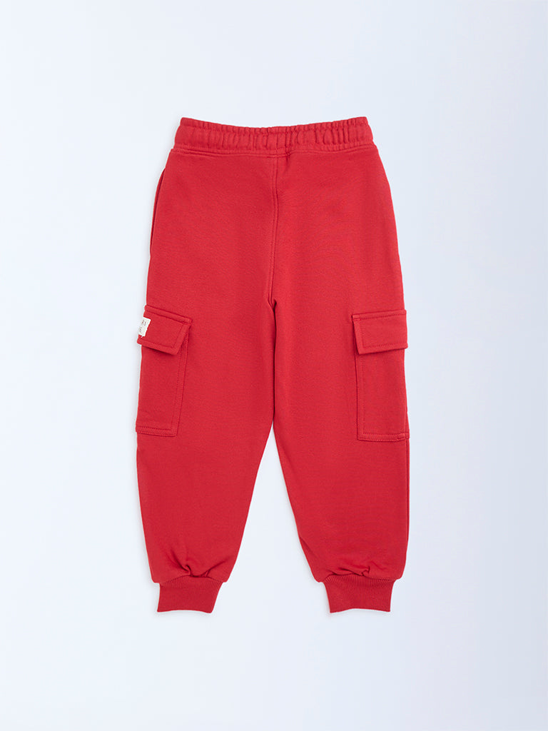 HOP Kids Red Mid-Rise Cotton-Blend Joggers