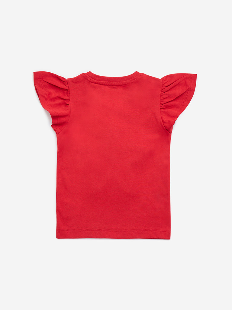 This red T-shirt from HOP Kids features a delightful star embellishment for a playful touch. Crafted from soft. breathable fabric. it is designed with flutter sleeves to add a stylish element to your little one’s casual wardrobe.