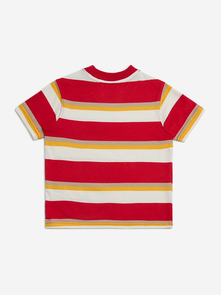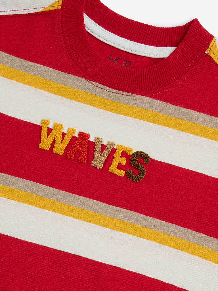 HOP Kids Red Stripe Printed Cotton T-Shirt