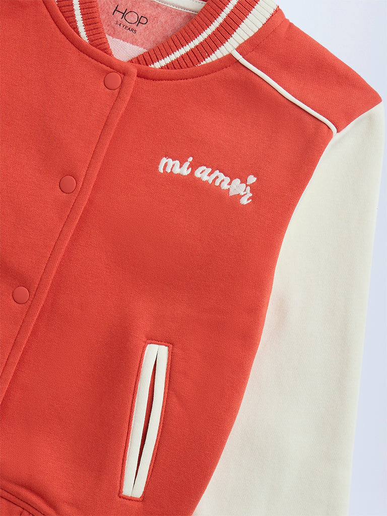 HOP Kids Red Text Design Cotton-Blend Varsity Jacket