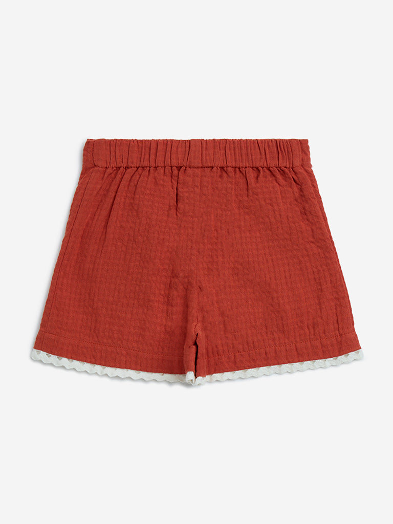 HOP Kids Rust Crinkle-Textured High-Rise Cotton Shorts