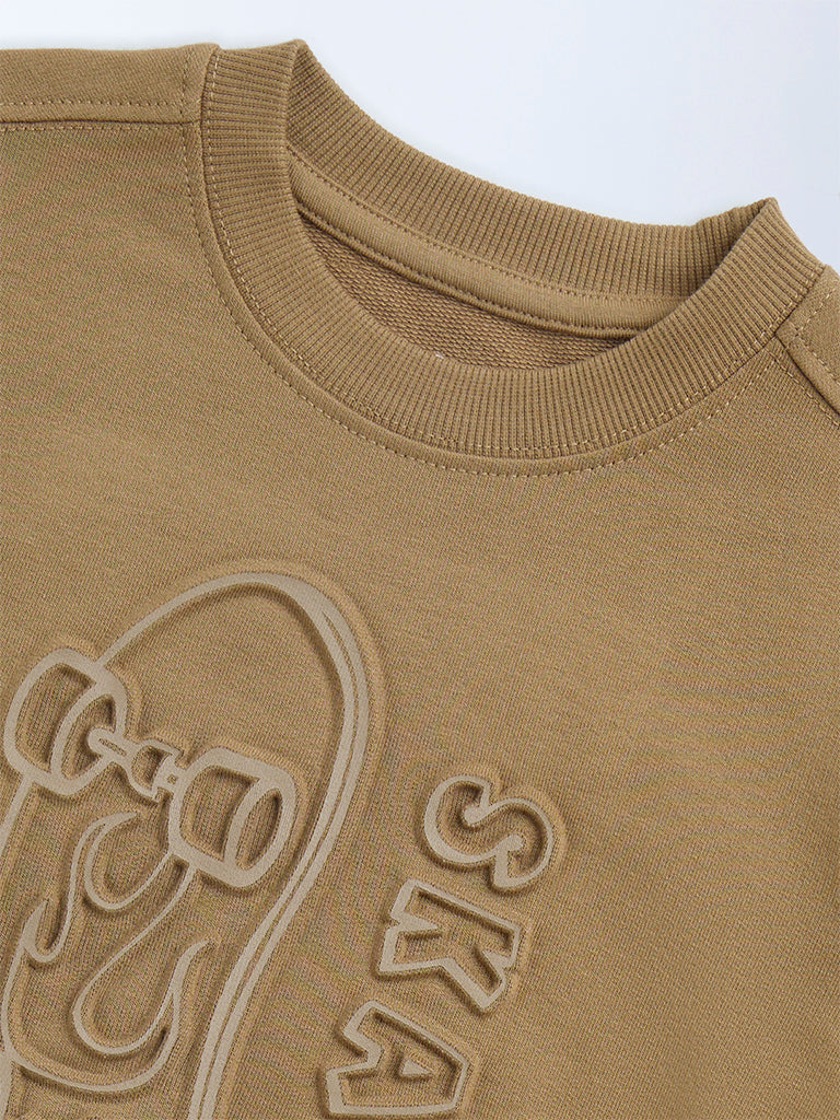 HOP Kids Taupe Embossed Cotton Sweatshirt