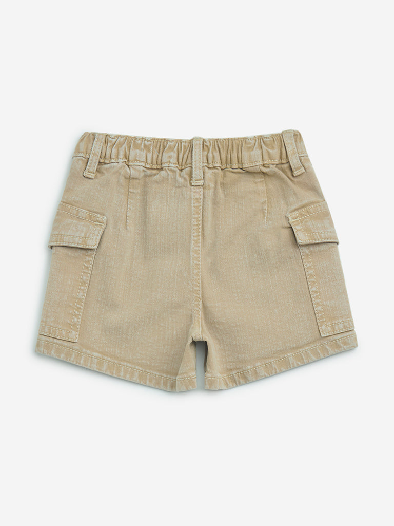These taupe denim shorts from HOP Kids are made from a sturdy cotton-blend fabric that ensures comfort through active days. Featuring a buttoned waist. belt loops. and a zip fly. they’re finished with multiple pockets for added utility and style.
