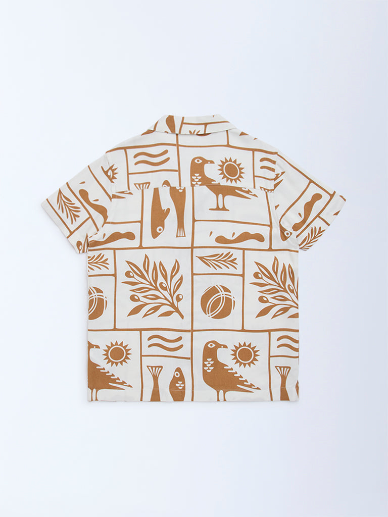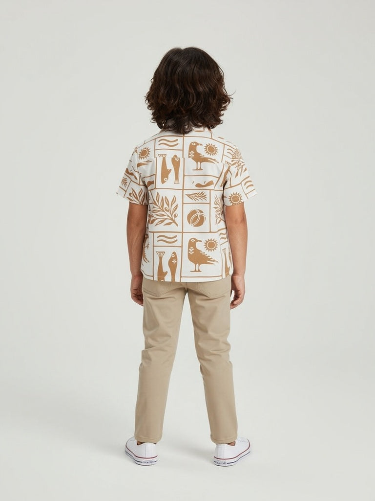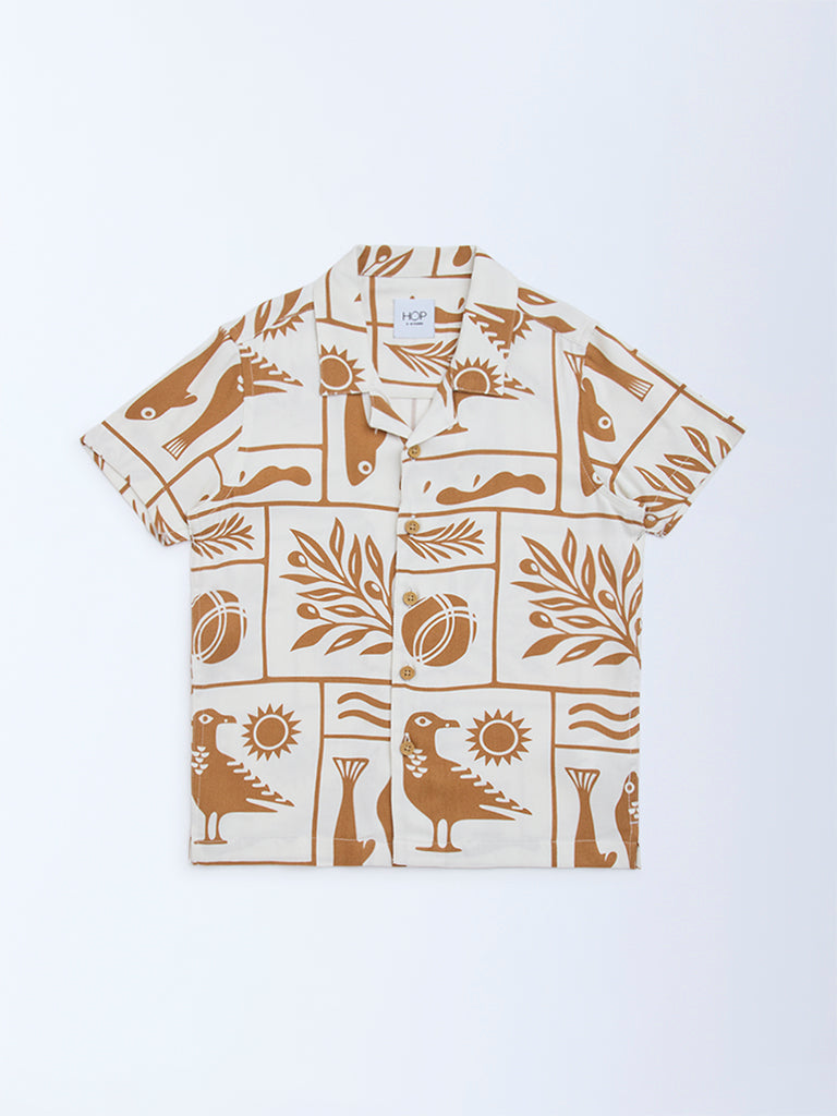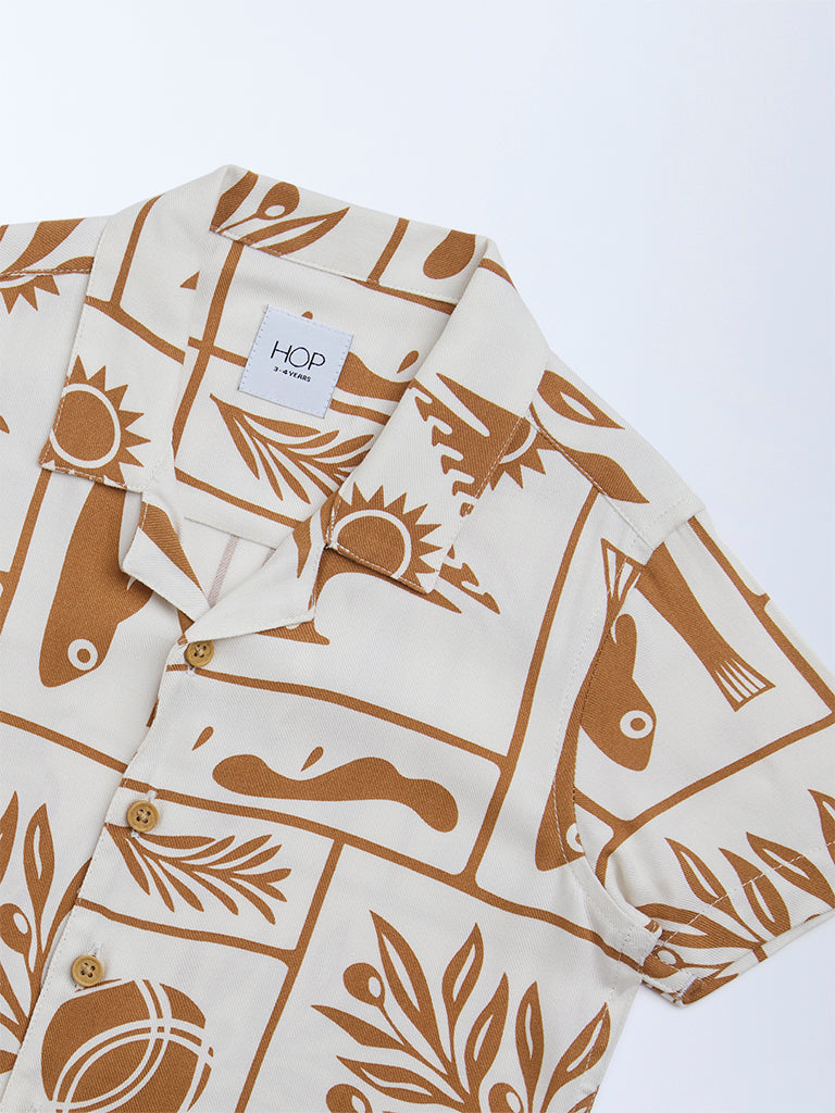 HOP Kids White Abstract Printed Resort-Fit Shirt
