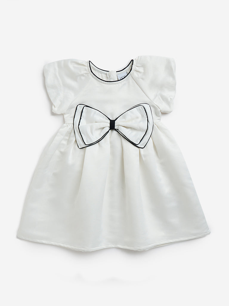 HOP Kids White Bow Design Fit-and-Flare Dress