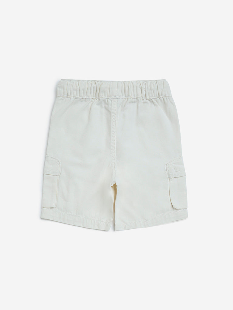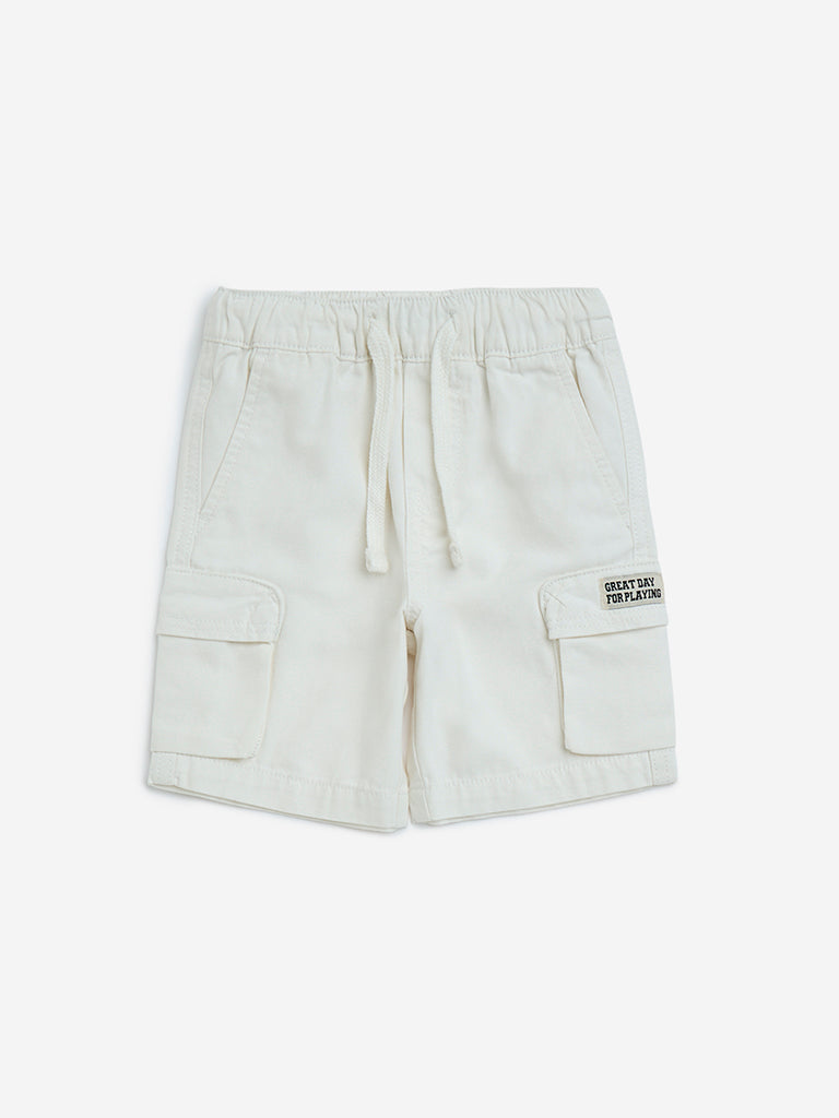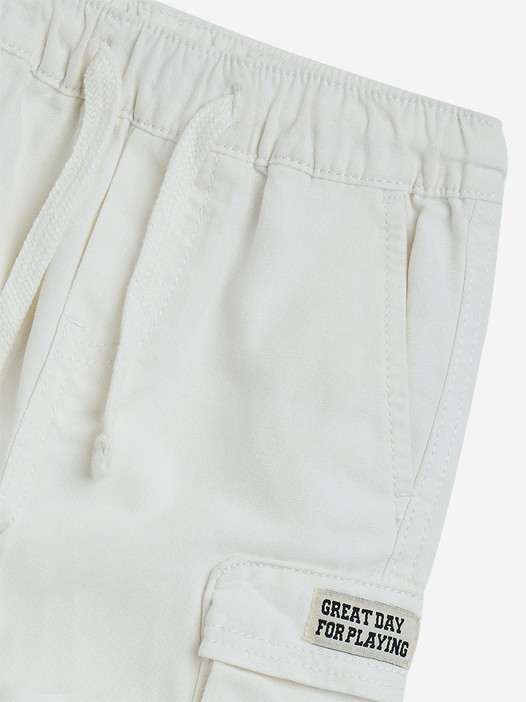 HOP Kids White Cargo-Style Mid-Rise Cotton Shorts