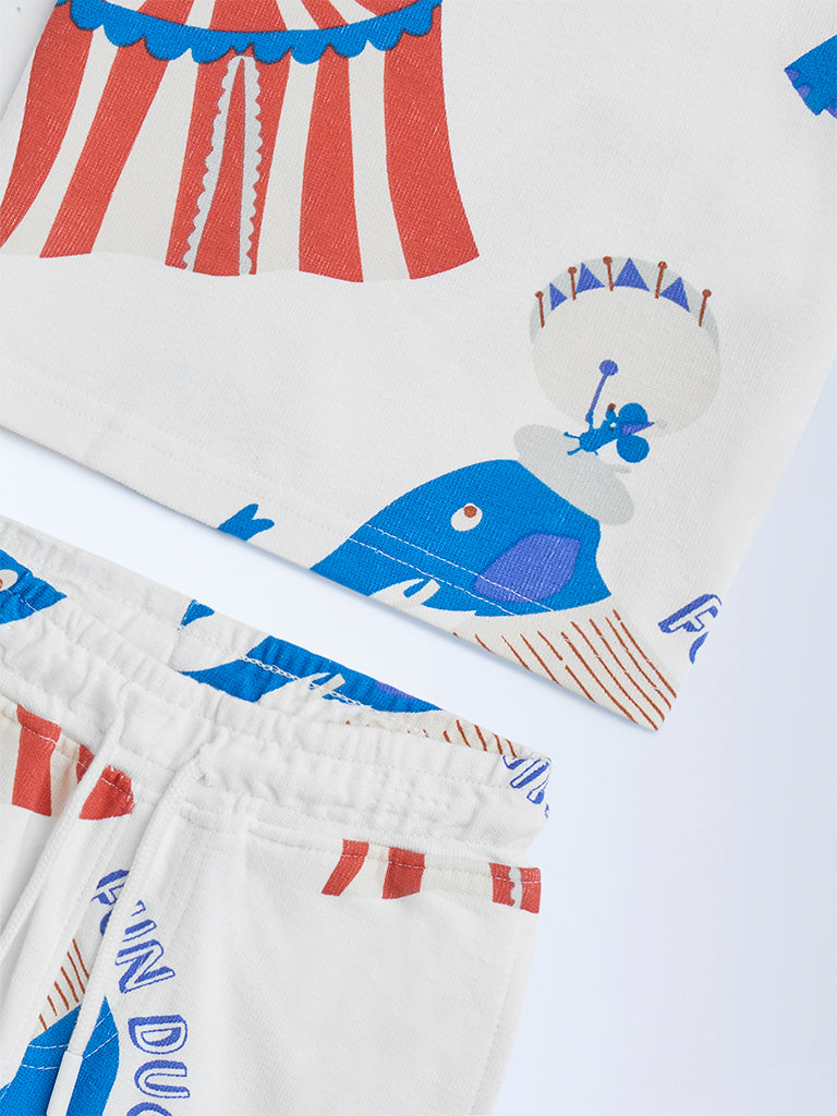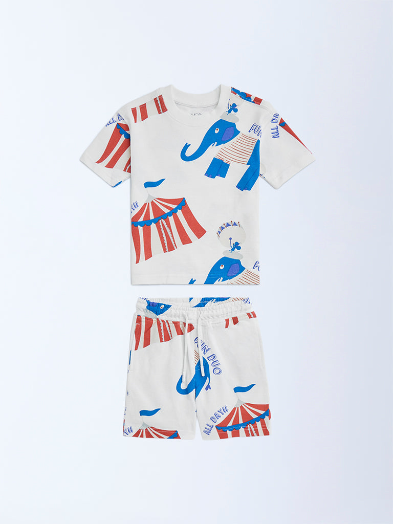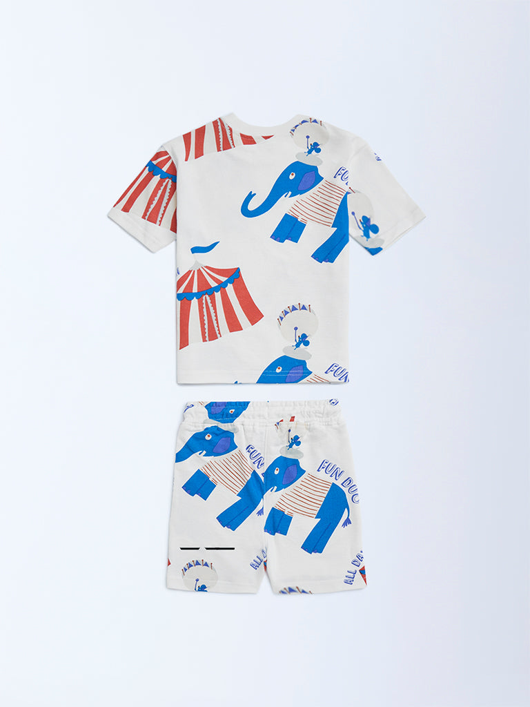 HOP Kids White Circus-Themed Cotton T-Shirt and Shorts Set