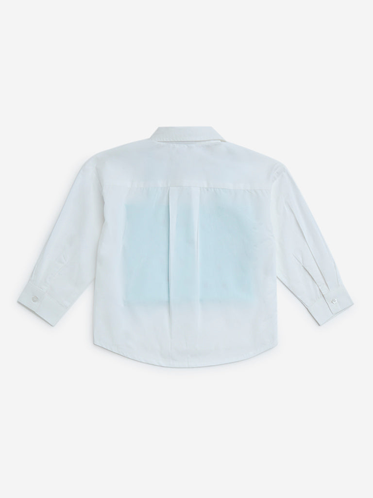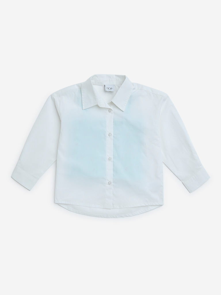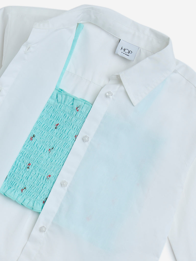 Spun from pure cotton. this white shirt from HOP Baby features a crisp collar. button placket. and full sleeves for a classic look. It’s paired with an attached smocked top detailed with dainty motifs. lending a textural contrast that adds charm to the overall ensemble.