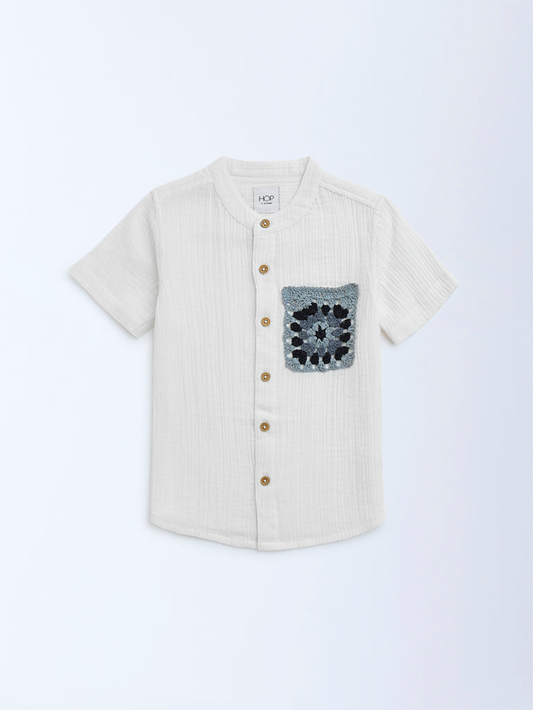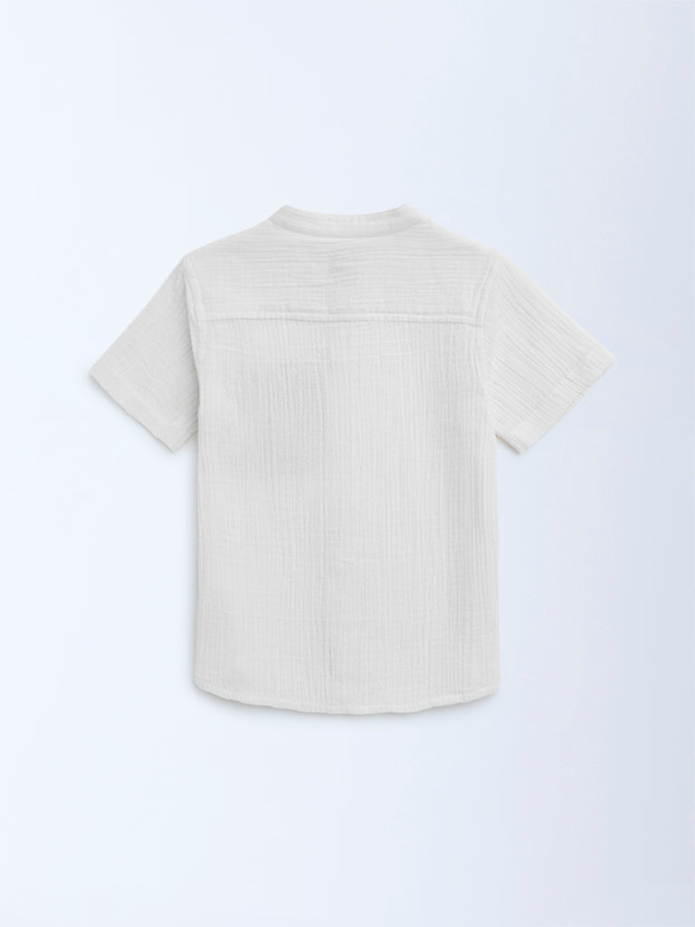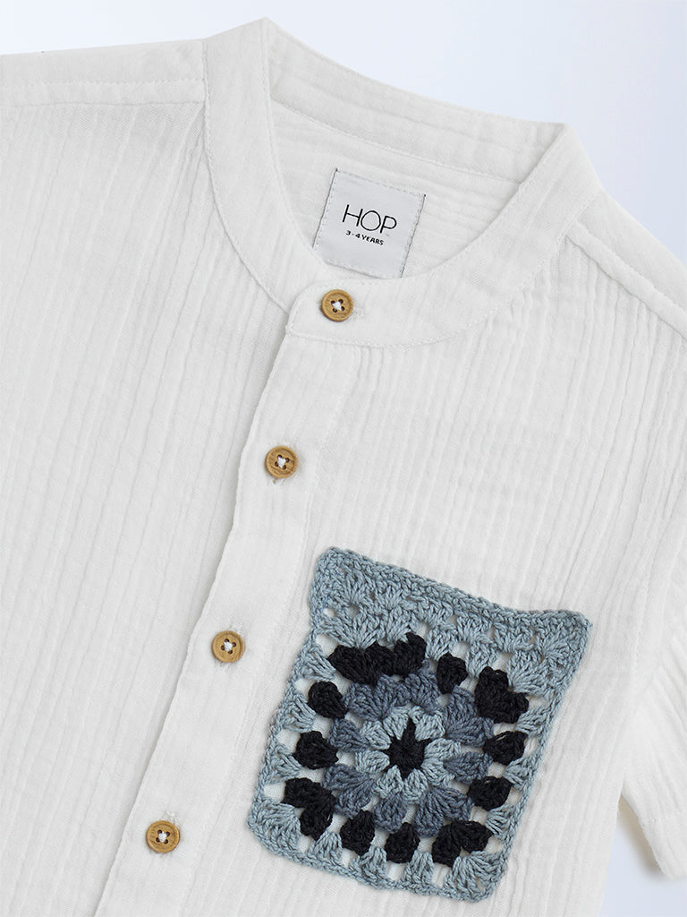 HOP Kids White Crinkle-Textured Cotton Shirt