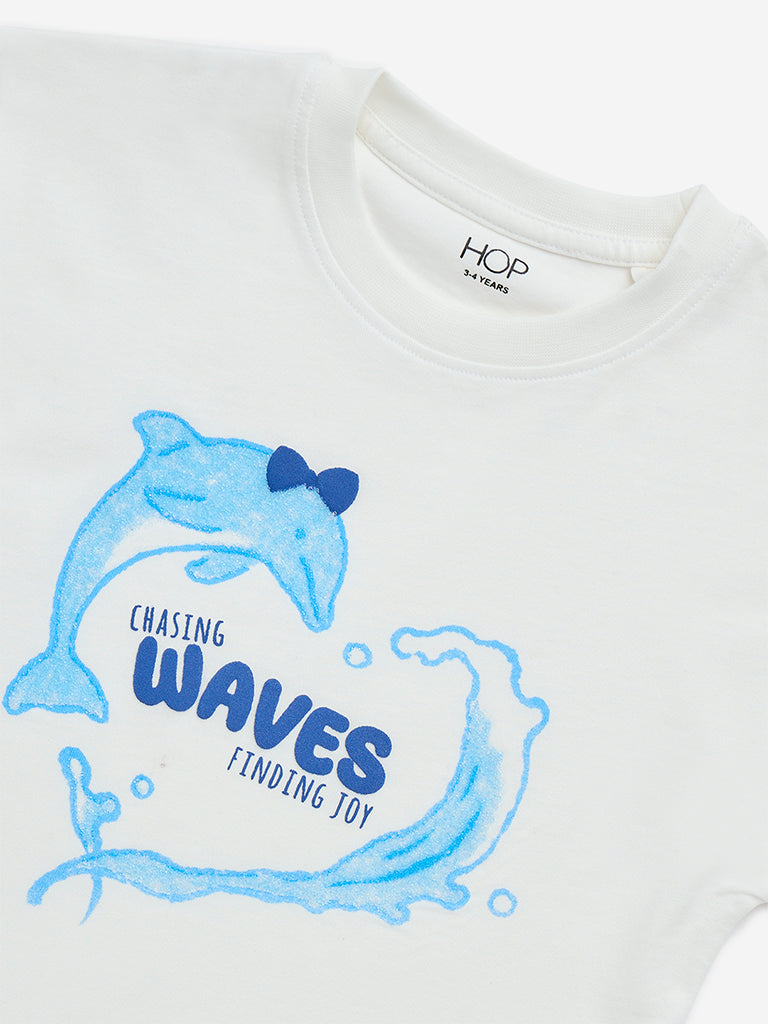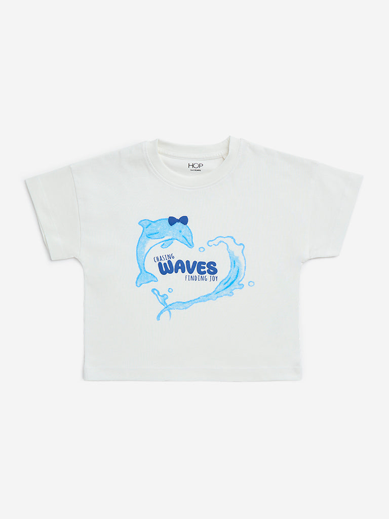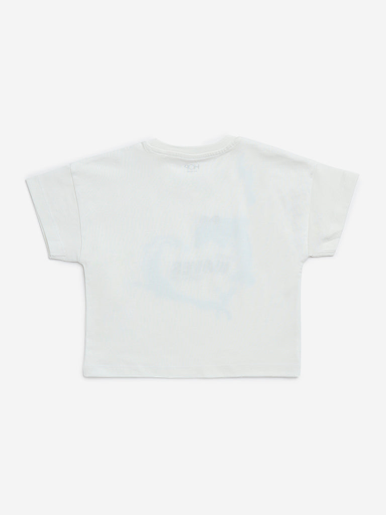 HOP Kids White Embellished Animal Printed Cotton T-Shirt