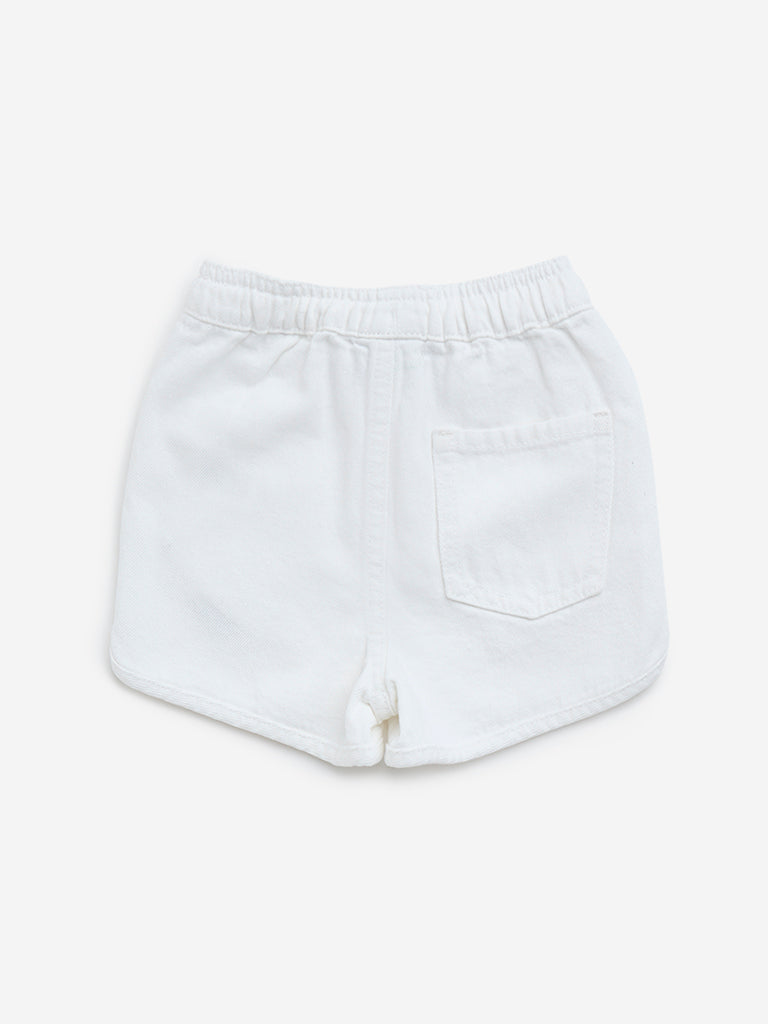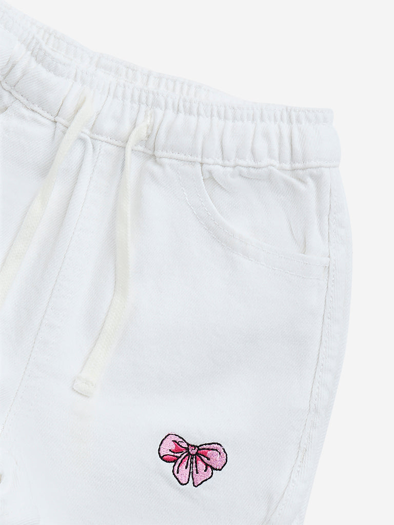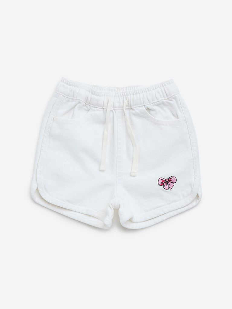 HOP Kids White Embroidered Mid-Rise Denim Shorts