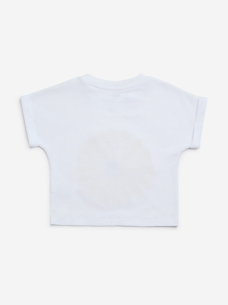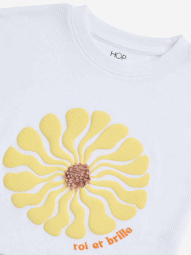 HOP Kids White Floral Design Cotton T-Shirt