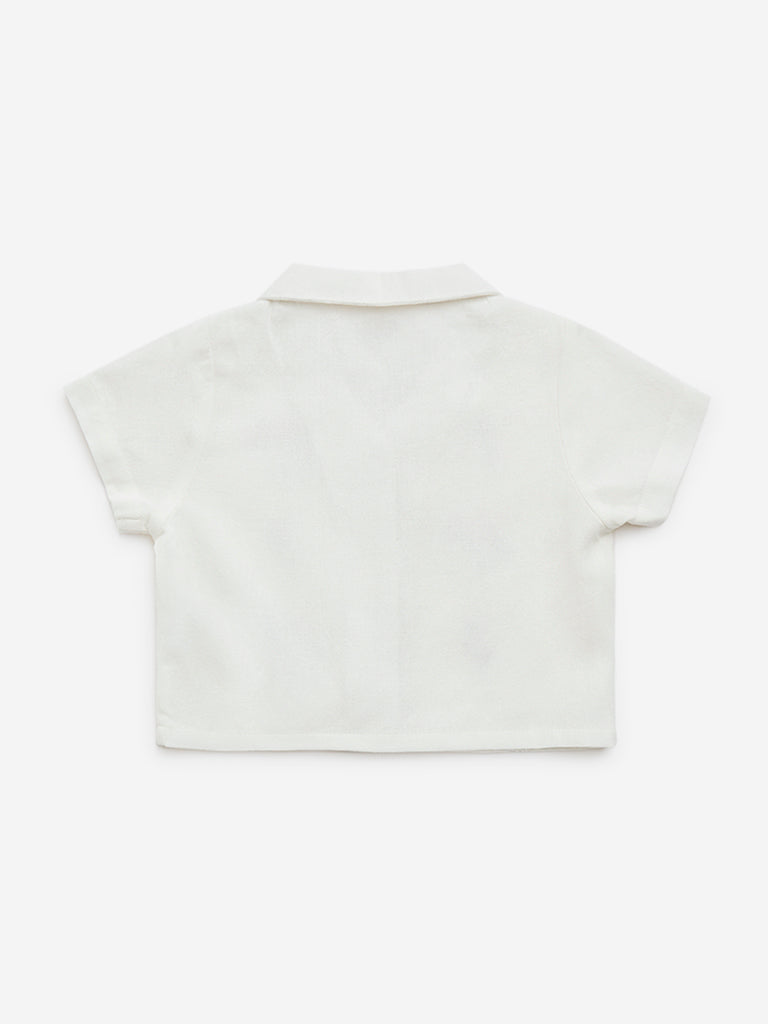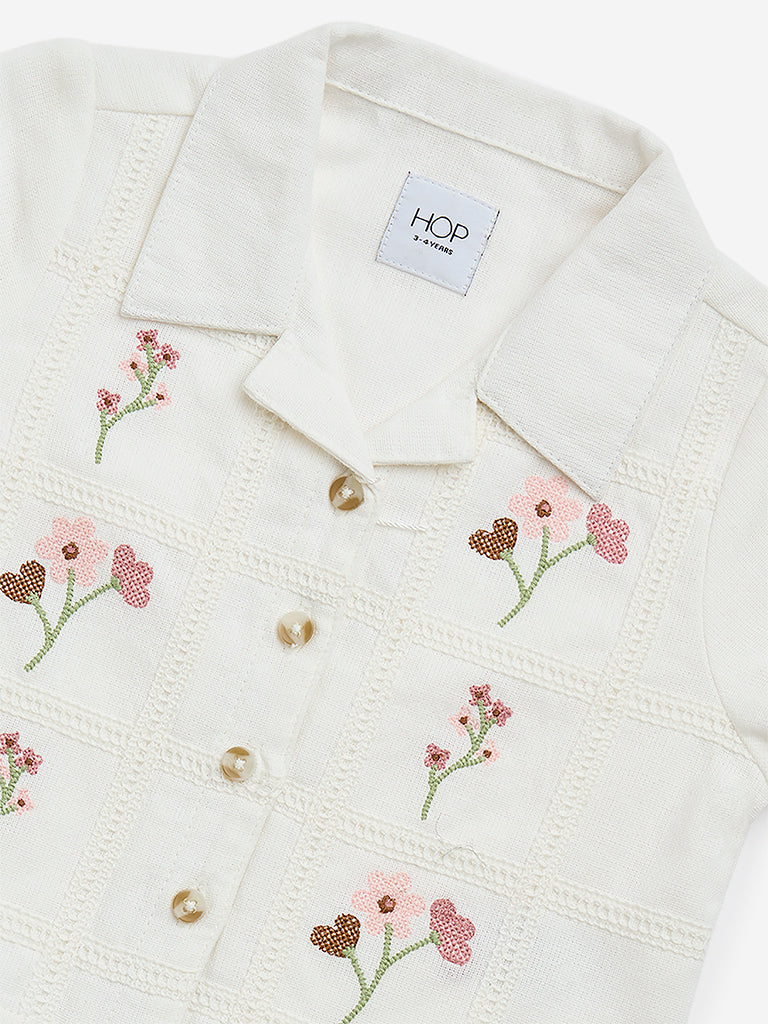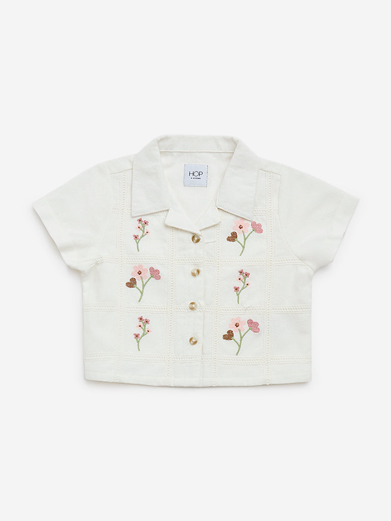HOP Kids White Floral Embroidered Cotton Shirt