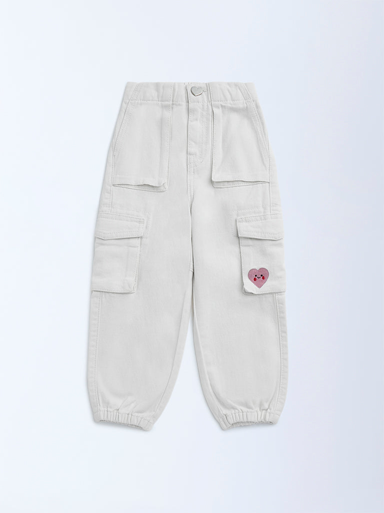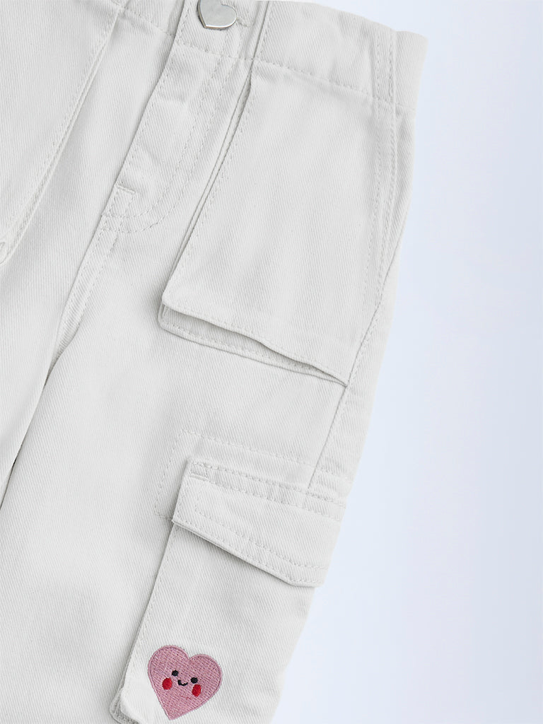 Add a touch of modernity to her after-school edit with these white jogger-style jeans from HOP Kids. Cut from sturdy cotton. they balance durability with everyday comfort through an elasticated back waist and a secure button closure. Multiple pockets introduce a practical edge.