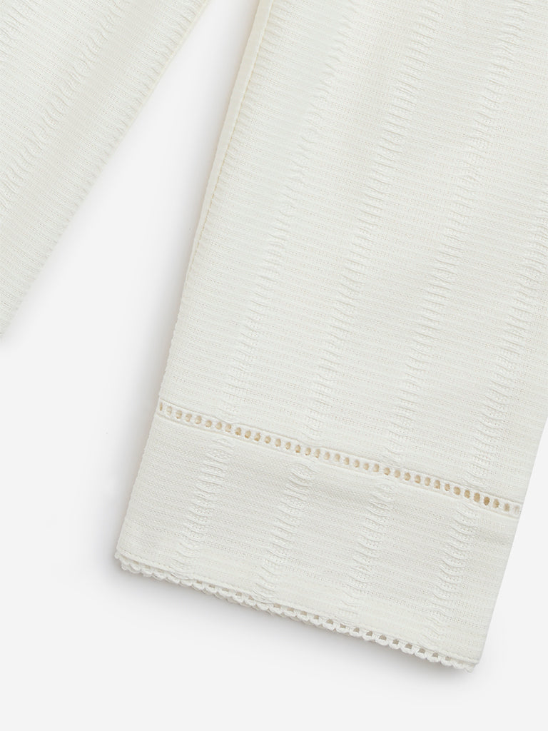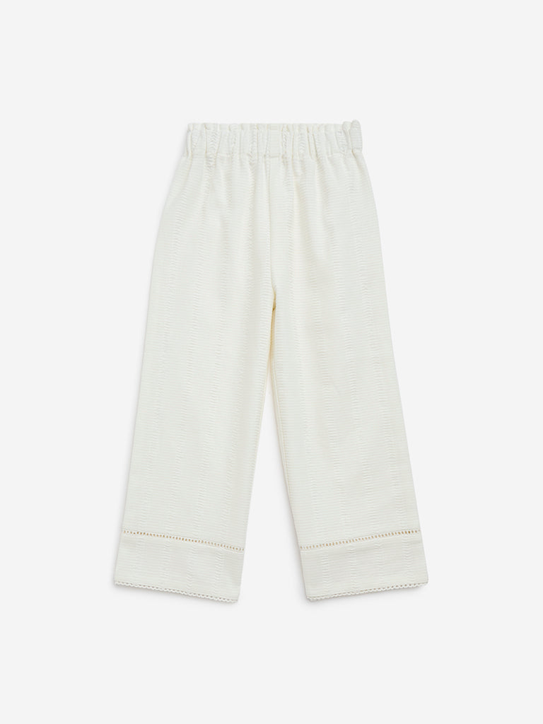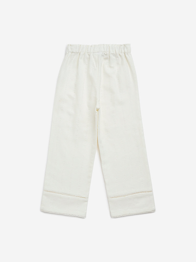 HOP Kids White Knit-Textured High-Rise Cotton Pants