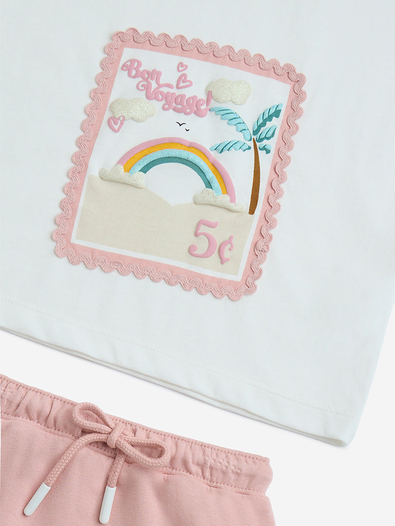 This adorable set from HOP Kids is perfect for sunny-day adventures. Created from pure cotton for all-day comfort. the white tee flaunts vacation-inspired prints along with a classic crew neck and short sleeves. Paired with a dusty pink skirt. designed with an elasticated waistband. adjustable drawstrings and handy pockets. this duo brings together playful charm and everyday functionality.