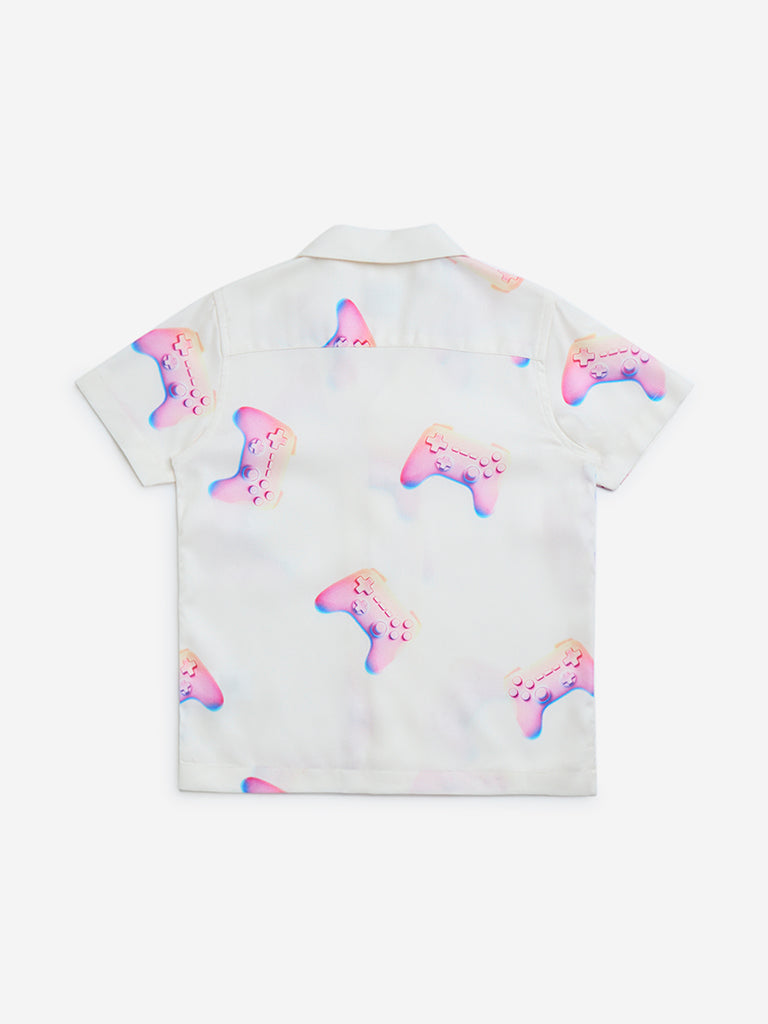Level up your little one’s style with this white shirt from HOP Kids. featuring a bold video game motif at the front. Crafted from quality fabric. it’s styled with a camp collar. short sleeves. and a classic button placket.