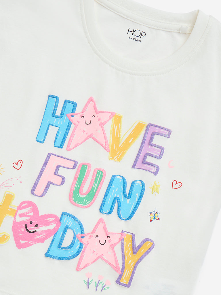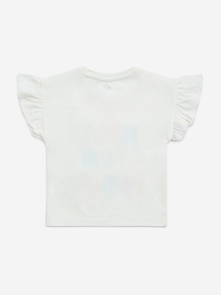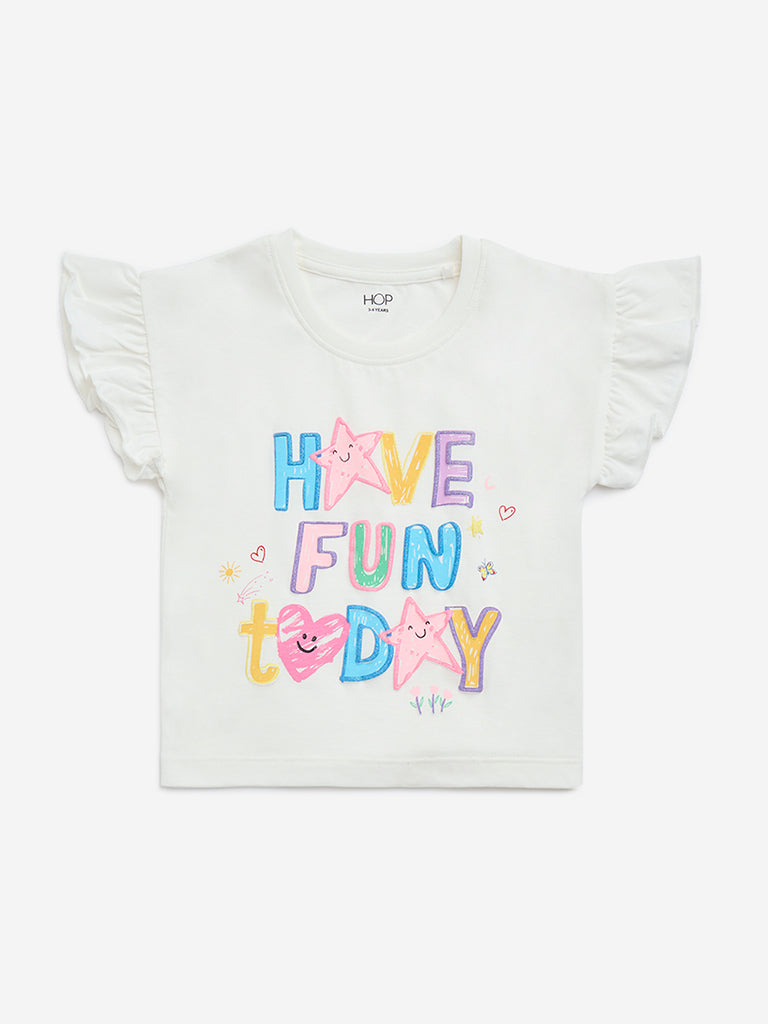 Amplify your little one’s day with this white t-shirt from HOP Kids. Featuring text designs and adorable star graphics. this flutter-sleeve design is crafted from pure-cotton for a fun and comfortable fit.