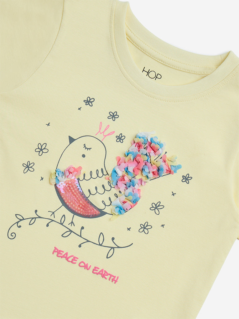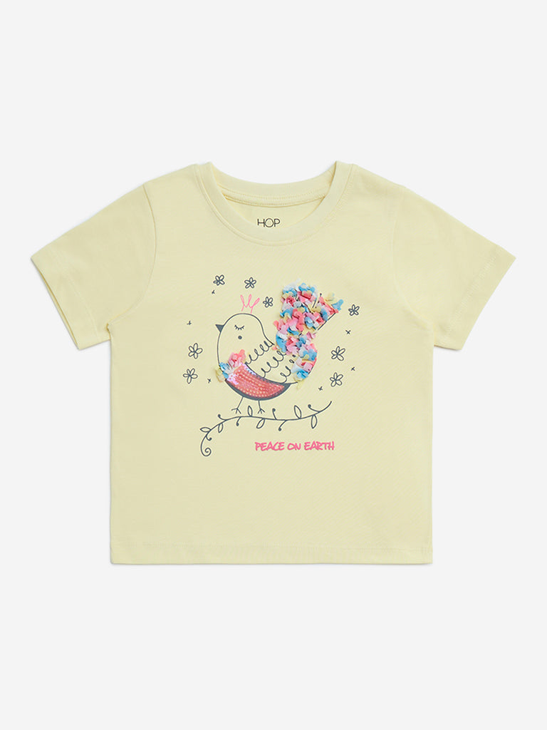 HOP Kids Yellow Bird Design Cotton T-Shirt