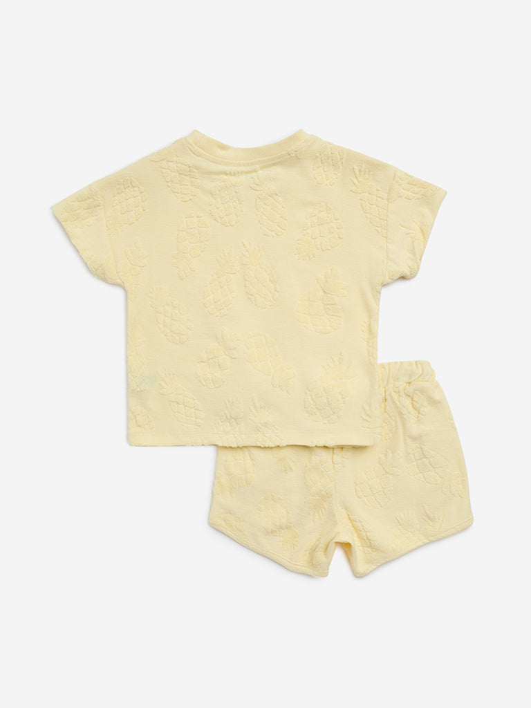 HOP Kids Yellow Embroidered Cotton T-Shirt with Shorts Set