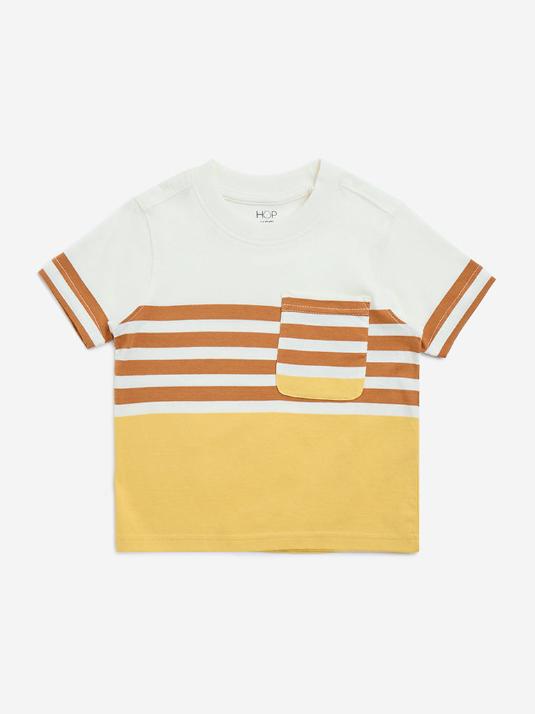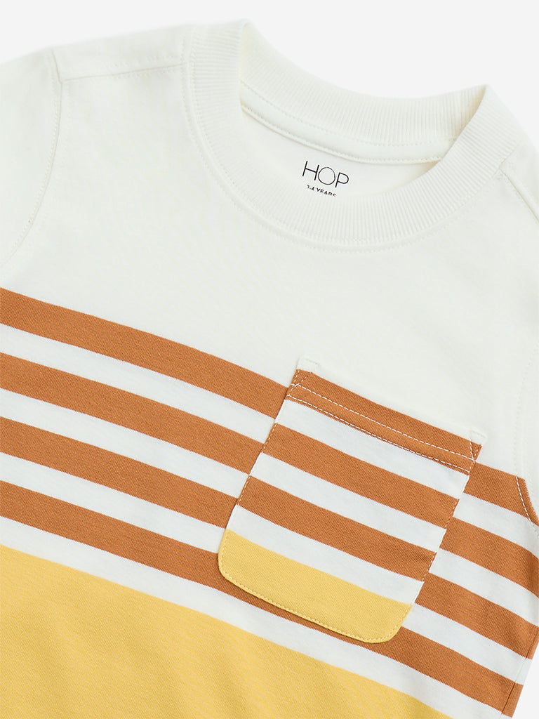 HOP Kids Yellow Stripe Printed Cotton T-Shirt