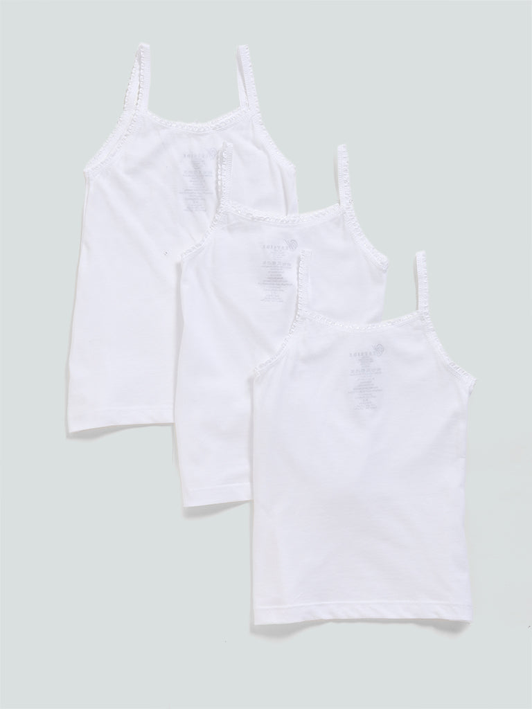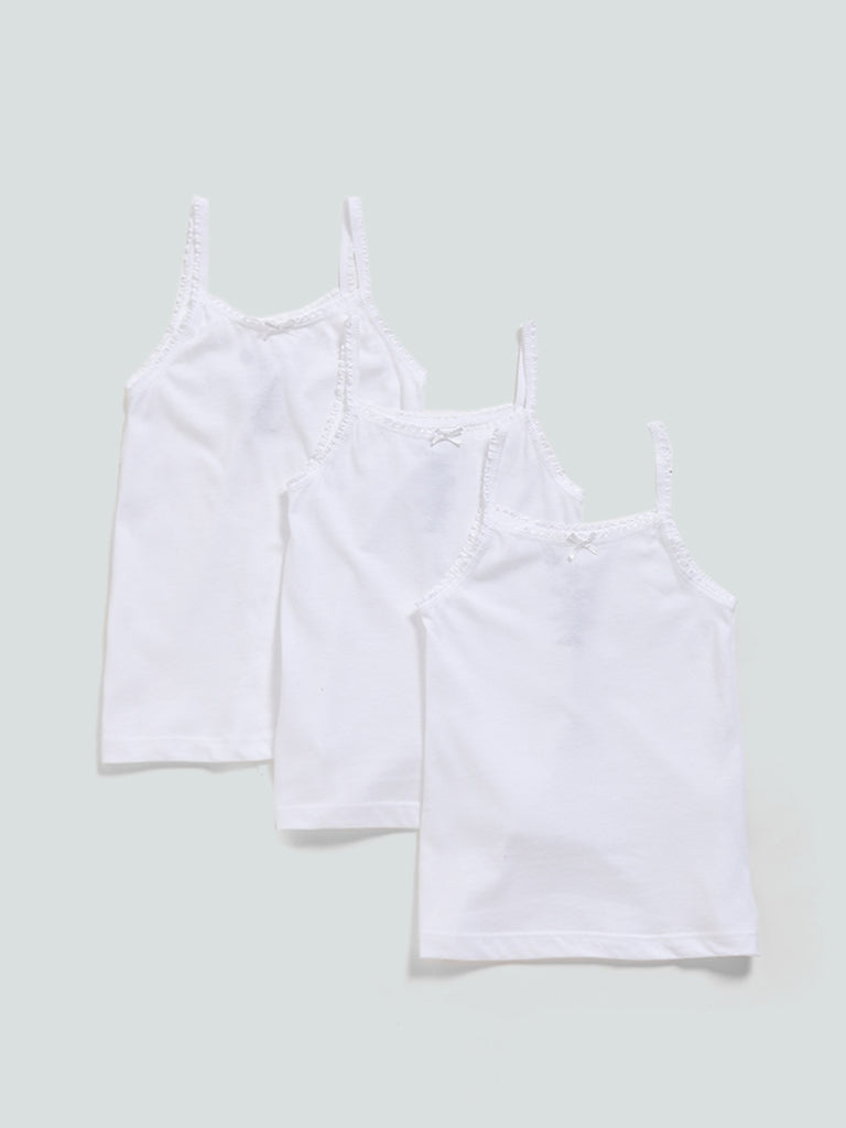 HOP Solid White Cotton Camisoles – Pack of 3