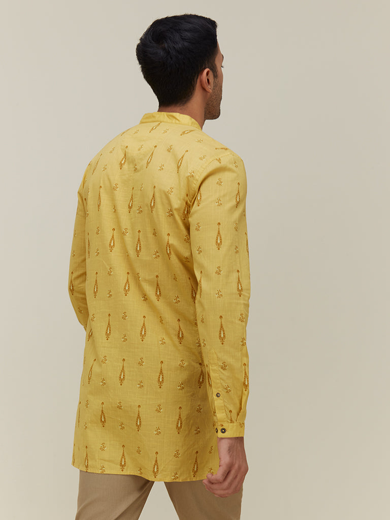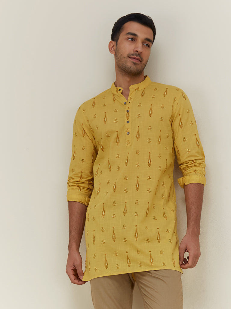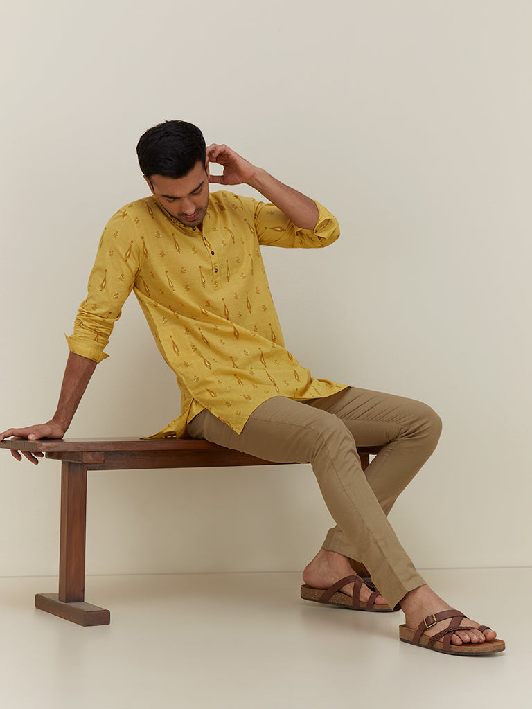 This traditional mustard resort-fit kurta from Kala by ETA propagates ethnic fashion beautifully. Crafted from a soft breathable fabric. it features floral motifs all over. With a buttoned placket and finished with pockets. it has a mandarin collar for practicality.