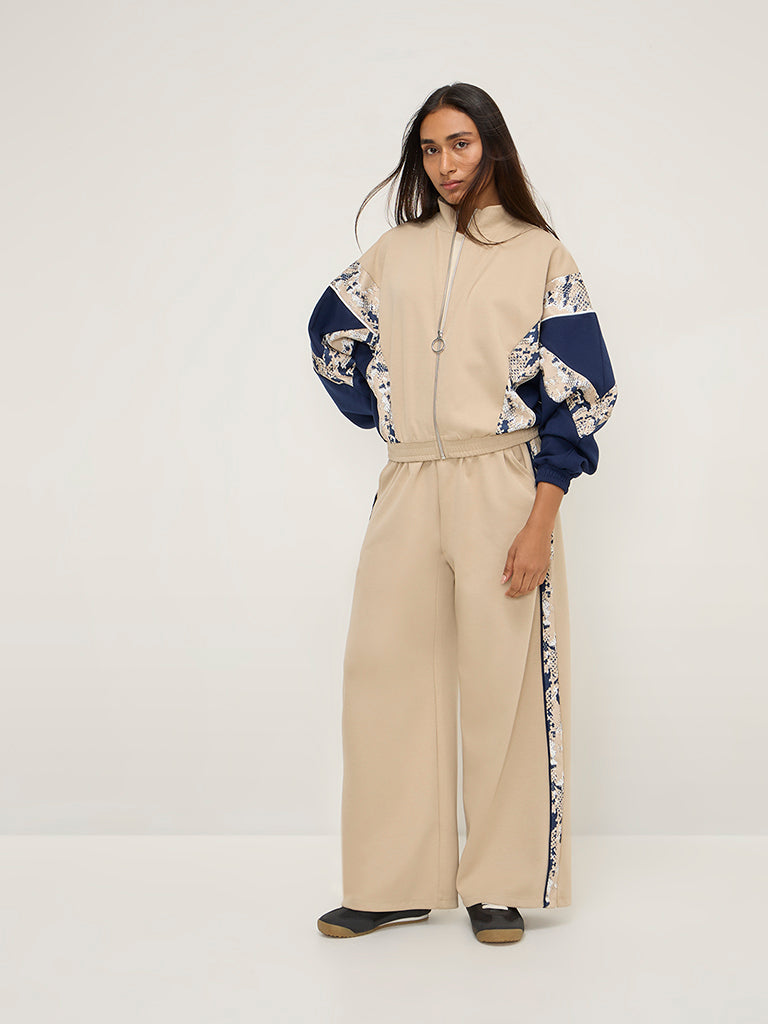Be the first to review “LOV Beige Abstract Design Jacket”