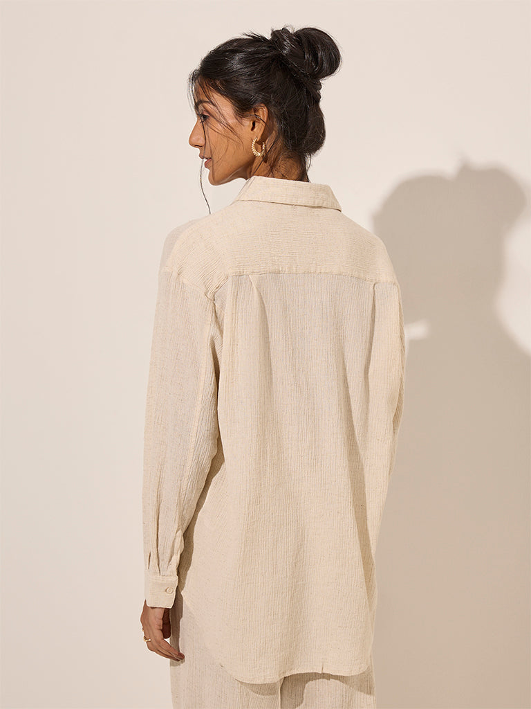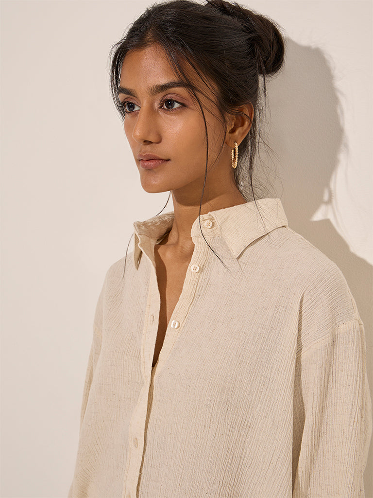 Be the first to review “LOV Beige Crinkle Textured Cotton Shirt”