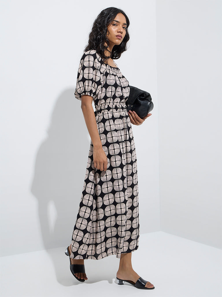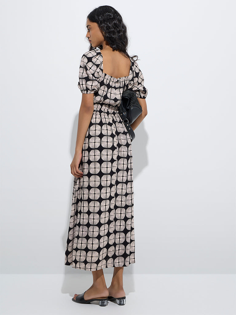 Be the first to review “LOV Beige Printed Linen-Blend A-Line Dress”