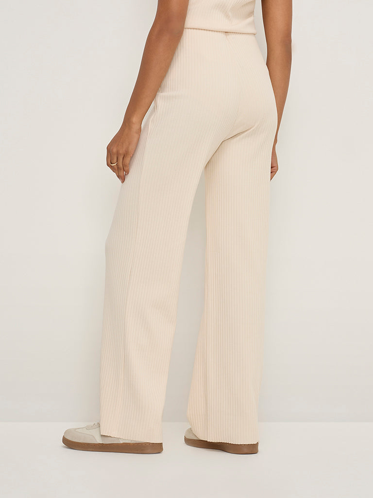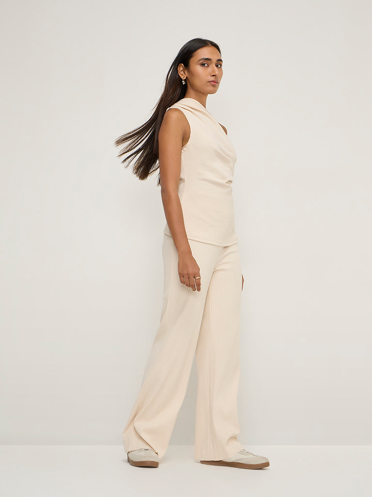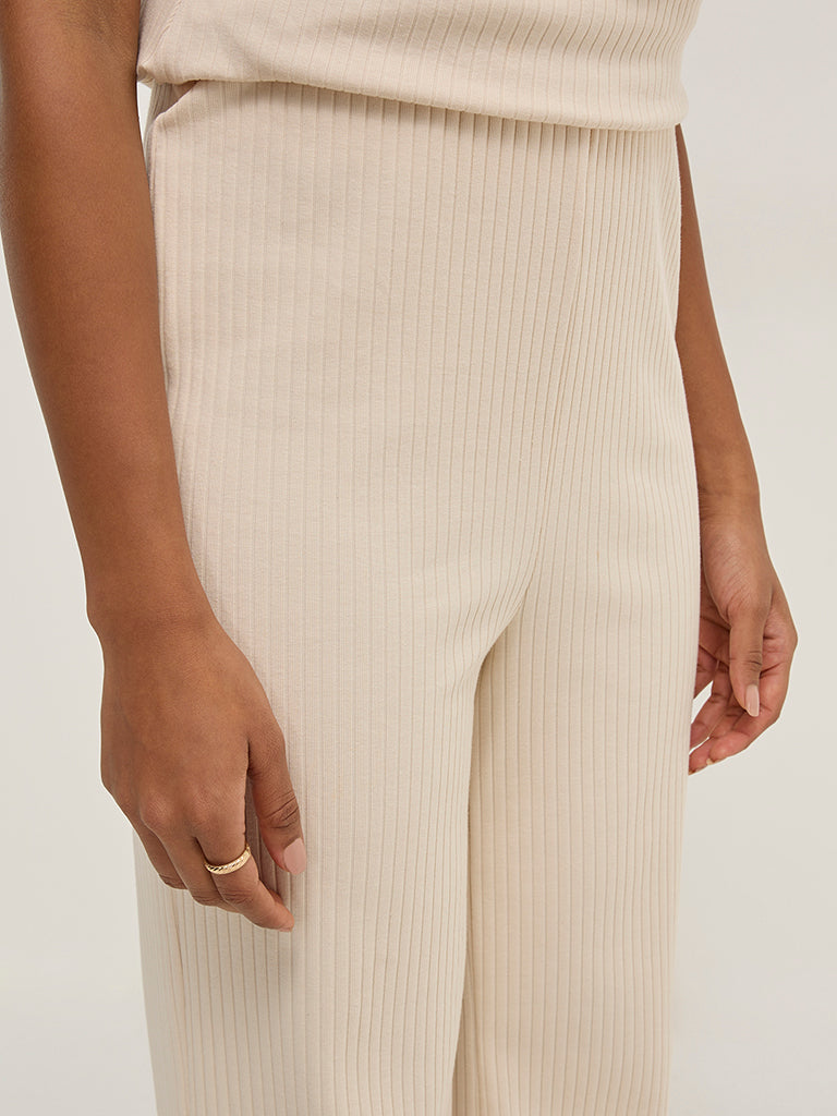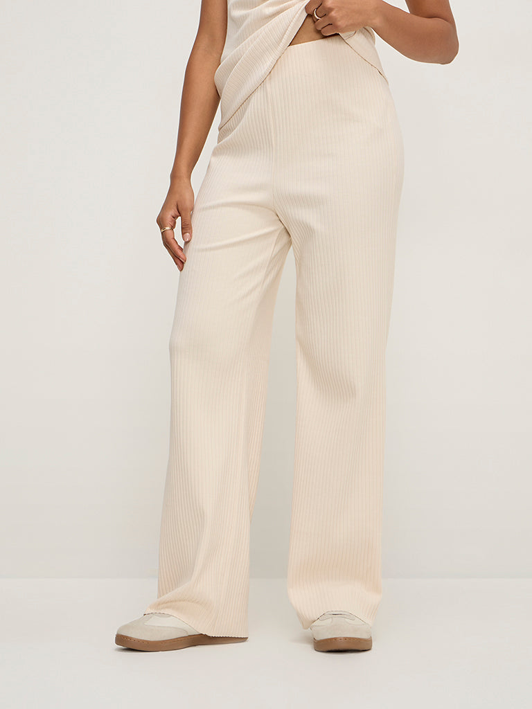 LOV Beige Ribbed-Textured High-Rise Cotton-Blend Pants