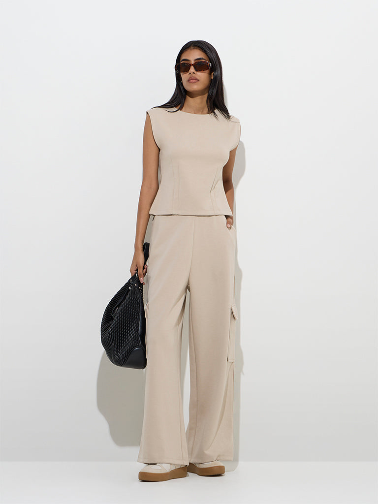 This beige top from LOV is designed with a crew neck and a sleek sleeveless cut for versatile styling. It’s cotton-blend composition ensures a flattering and comfortable fit.