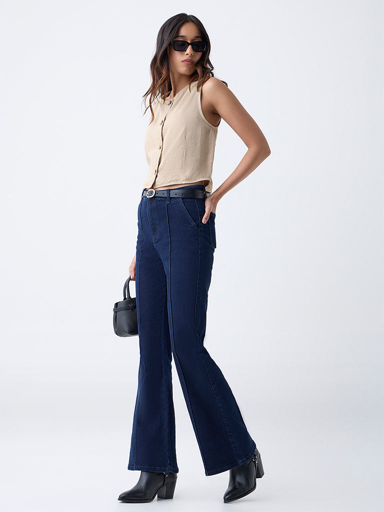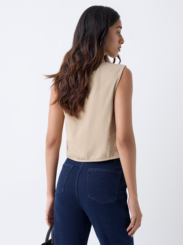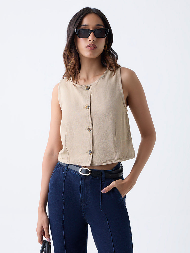 LOV Beige Solid Cotton Vest Top