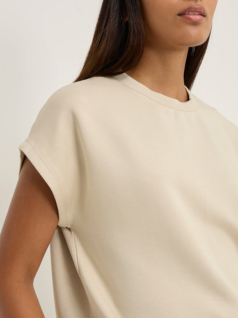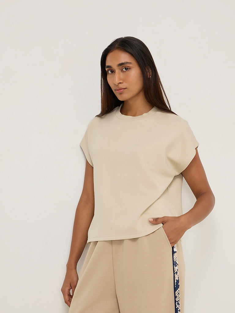 This beige t-shirt from LOV is crafted from a sumptuous fabric with a crewneck and dolman sleeves for maximum comfort.
