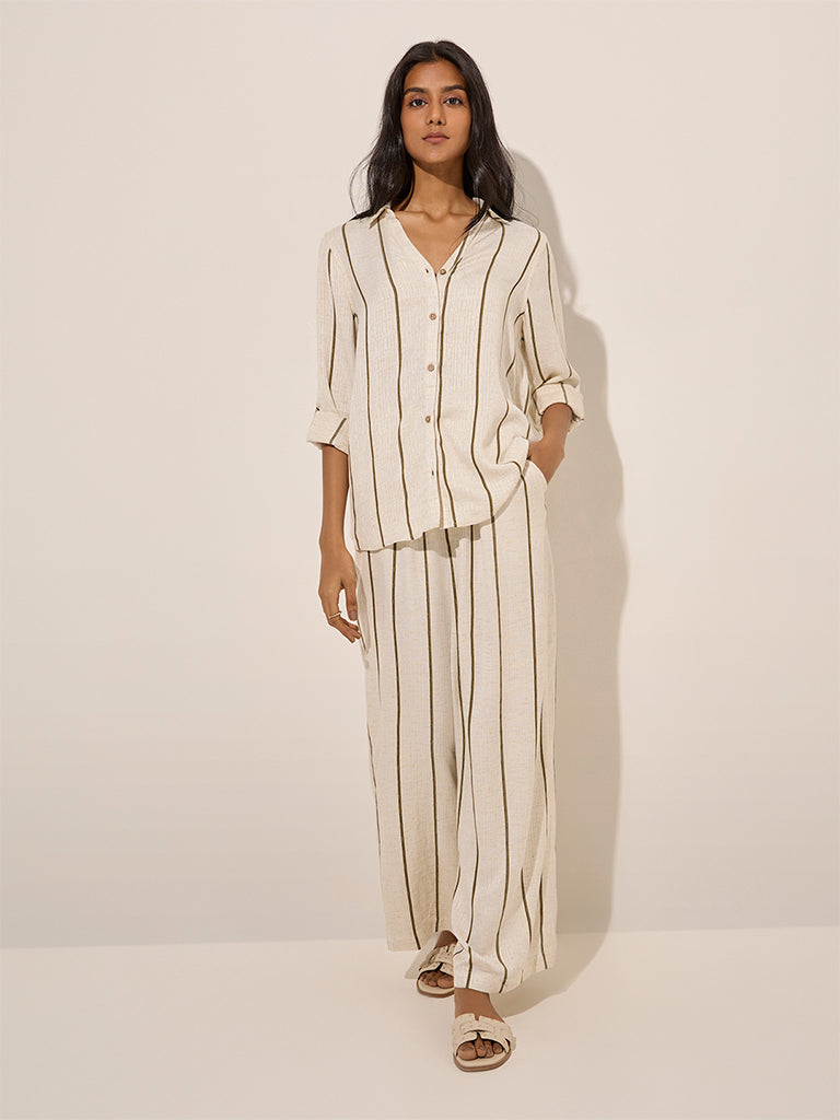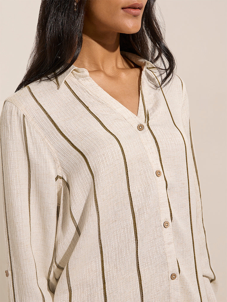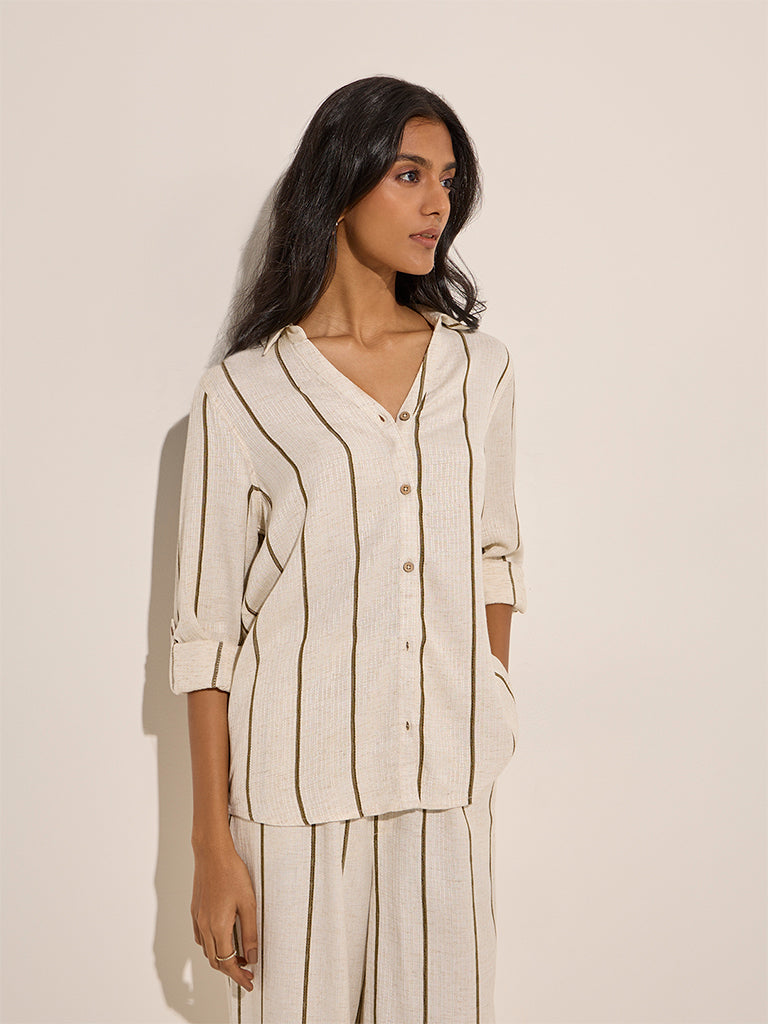 LOV Beige Striped Linen-Blend Shirt