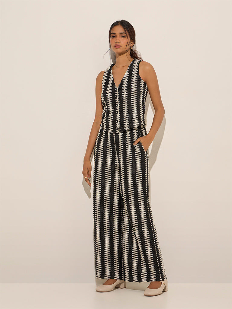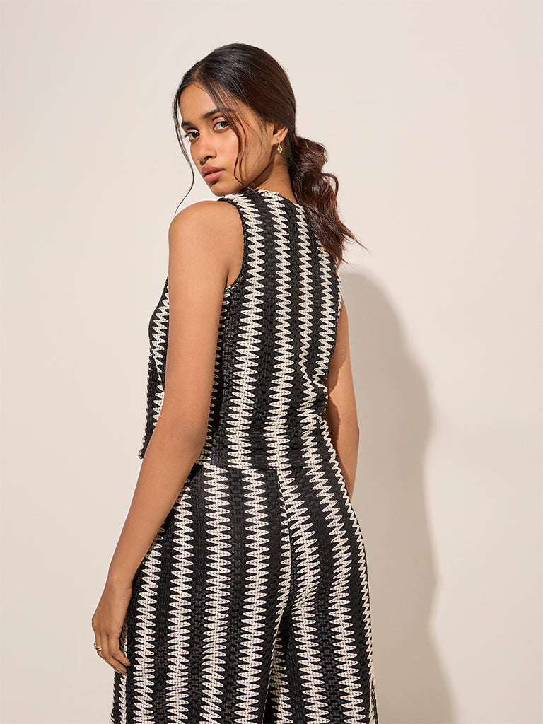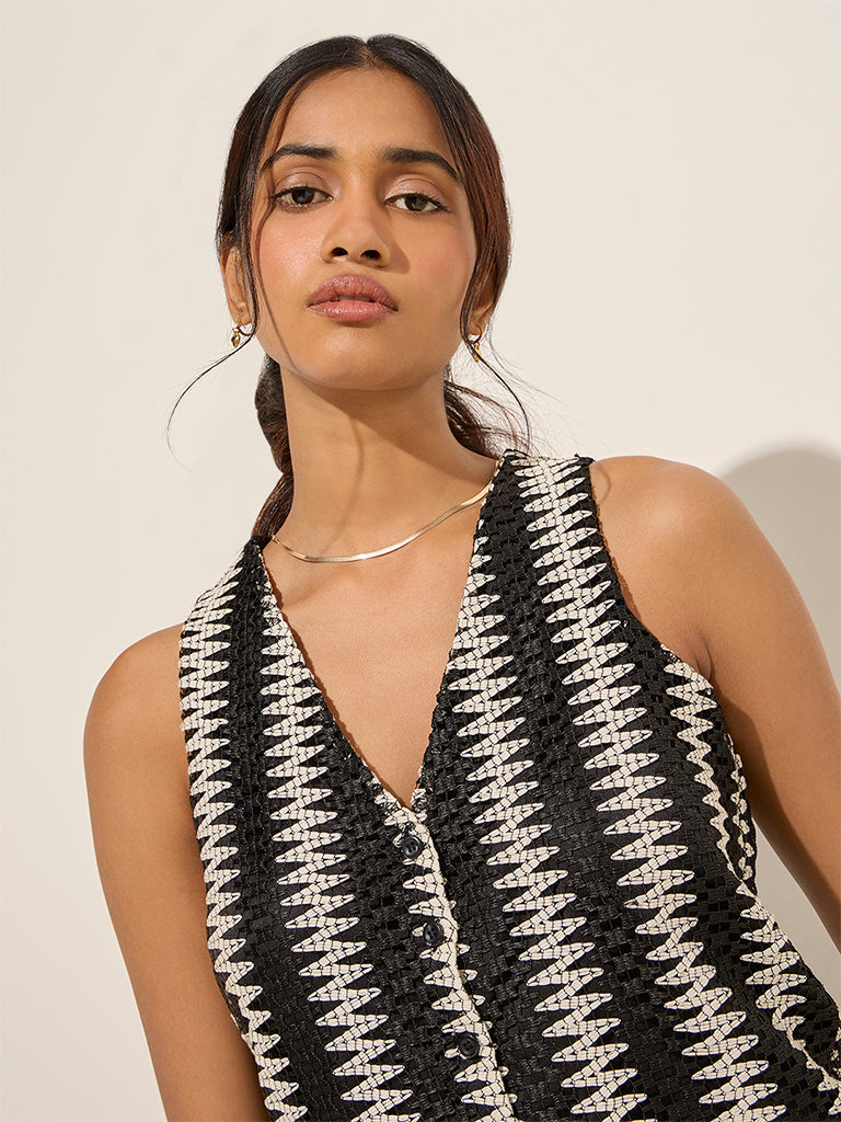 LOV Black Abstract Pattern Knitted Waistcoat-Style Top