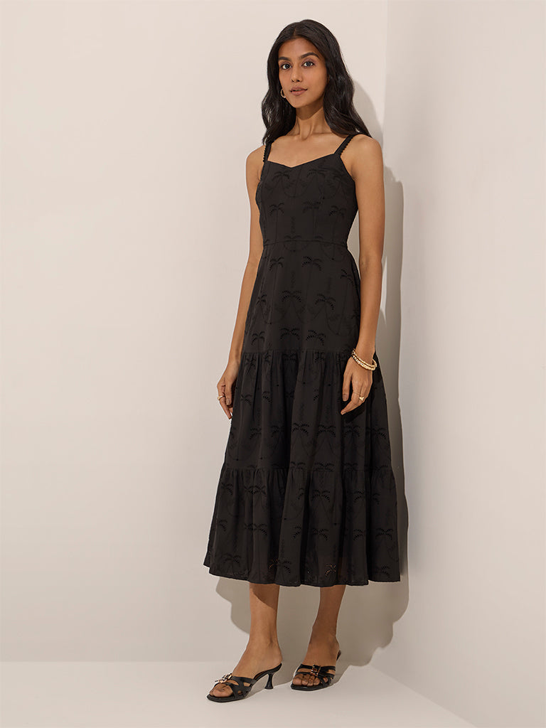 Be the first to review “LOV Black Embroidered Tiered Cotton Dress”
