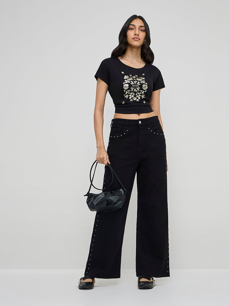 Be the first to review “LOV Black Floral Printed Cotton T-Shirt”