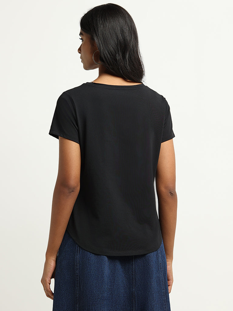 Be the first to review “LOV Black Graphic Print Cotton T-Shirt”