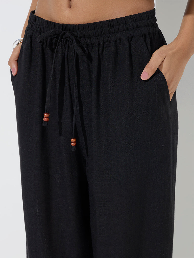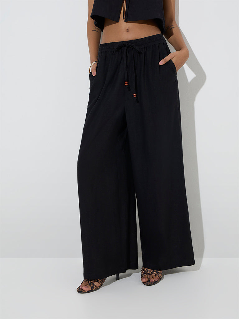 Be the first to review “LOV Black Linen-Blend High-Rise Trousers”