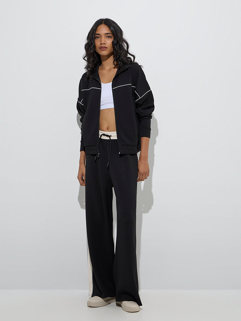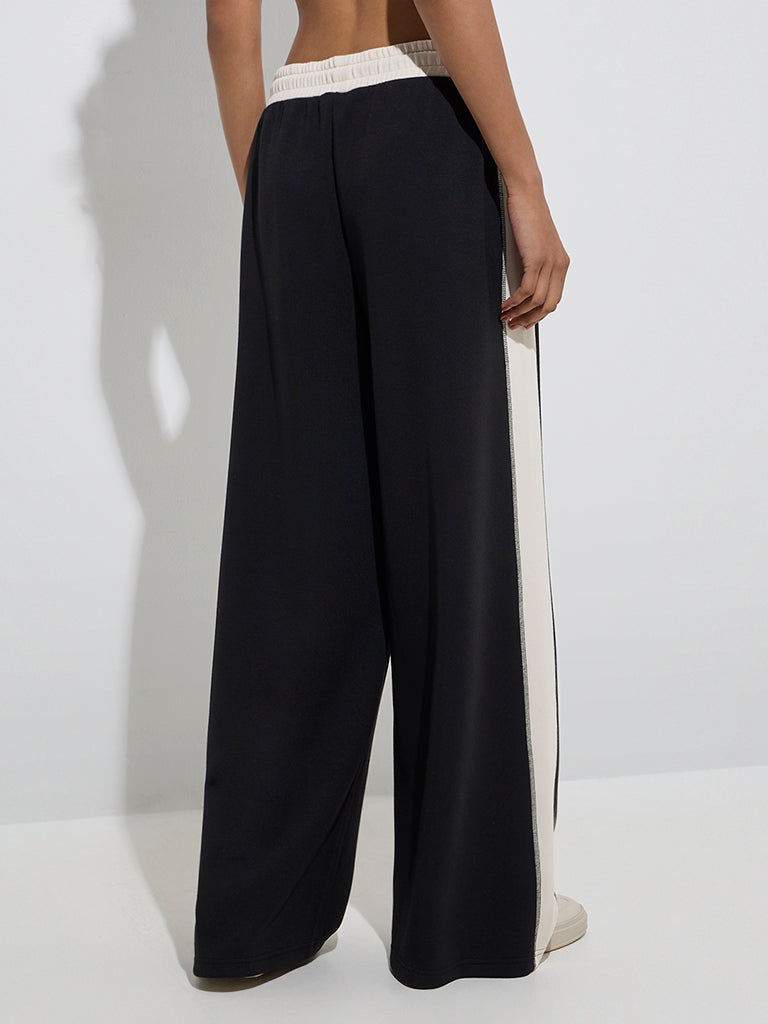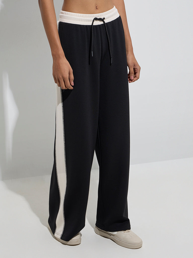 These black pants from LOV are created from a lightweight fabric for effortless comfort. Designed with an elasticated waistband and adjustable drawstrings. they offer a flexible fit. Contrast side panels lend a sporty touch. making this pair a stylish staple for relaxed. off-duty days.